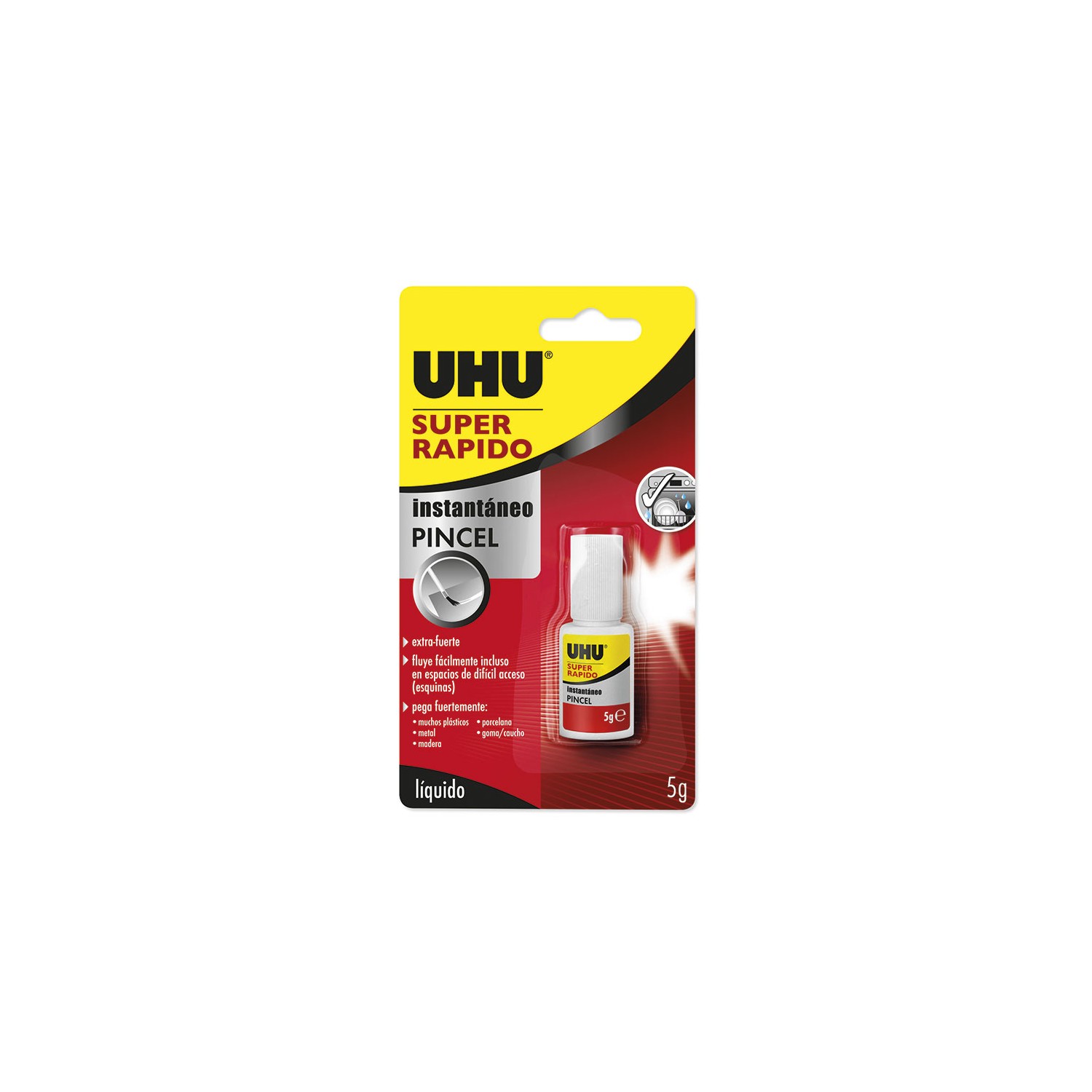 Super rápido pincel 5 g. pegamento superrápido extrafuerte con aplicador con pincel, idóneo para pegar superficies y bordes. el líquido llega a las esquinas y juntas más pequeñas. frasco que permanece de pie de forma segura y tiene función antivertido.