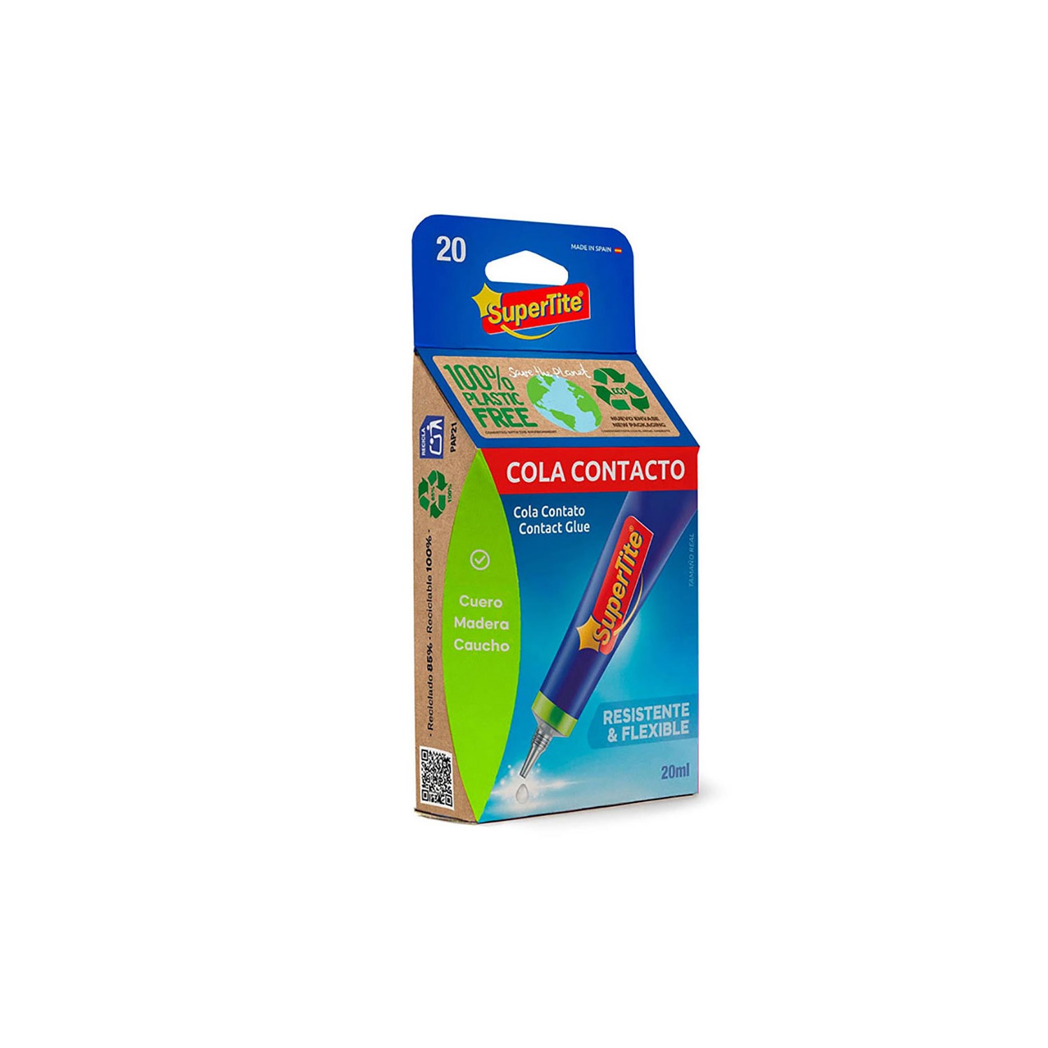 Adhesivo contacto, blister 20 ml. adhesivo con enormes posibilidades indicado para: bricolaje y trabajos manuales en general (suelas y tacones de zapatos, cantos decorativos de madera, etc.) pegado de corcho, madera, moqueta, vidrio, estratificados (formica), melamínicos, tejidos, cuero, etc.
