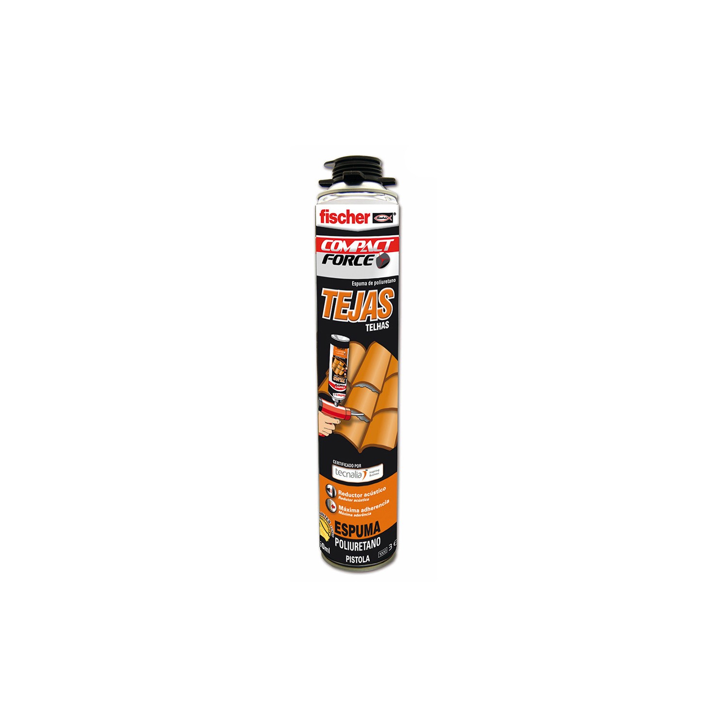 Espuma pu tejas pistola 750 ml. espuma monocomponente de endurecimiento rápido que contiene una mezcla de propulsora libre de cfc, que no daña la capa de ozono. la espuma de tejas es un producto de gran poder adherente que no sobreexpande con el fin de evitar la deformación del montaje de tejas. tras el proceso de curado, la espuma es cortable, lijable y pintable