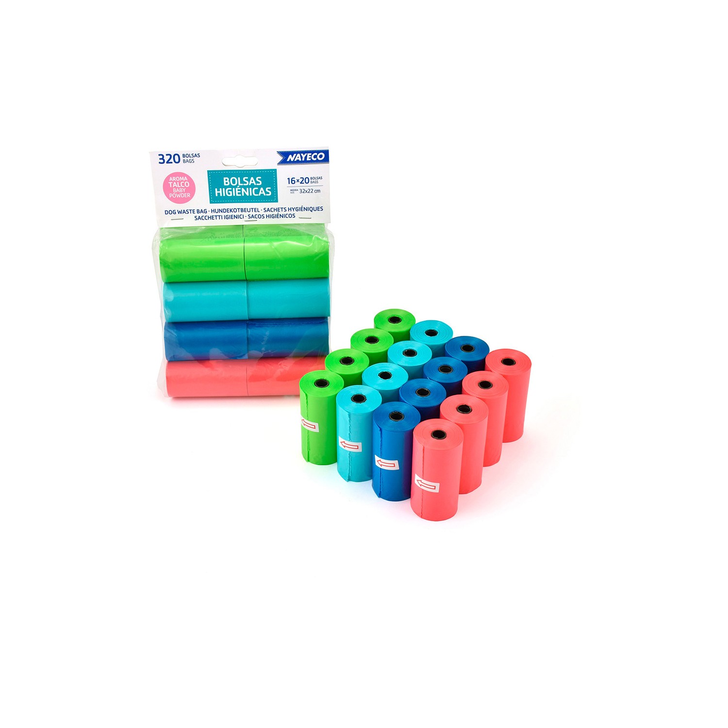 Bolsas higienicas con aroma de talco 16 rollos de 20 bolsas