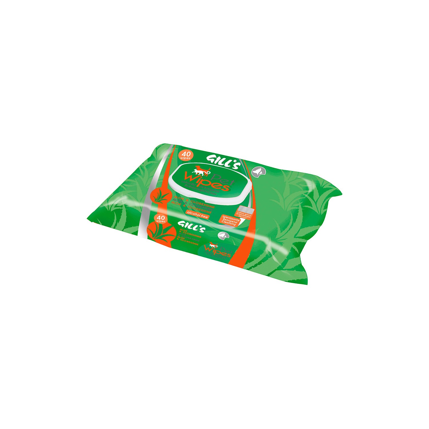 Toallitas humedas xl higienizantes con aloe y clorhexidina para mascotas 40 unid. (30x20cm) gill's
