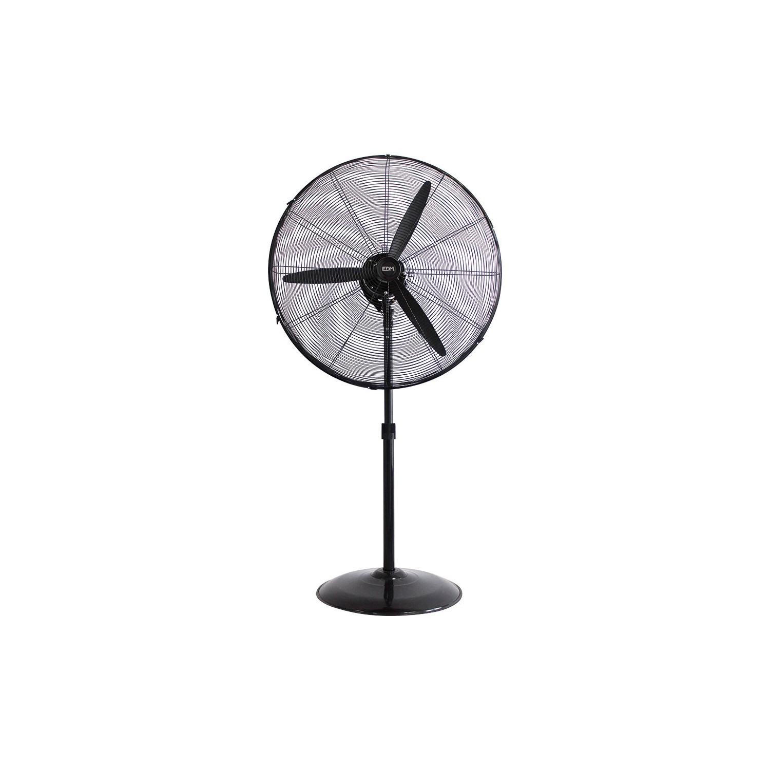Ventilador de pie industrial, con base circular. color negro. potencia: 180 w aspas: ø60cm altura regulable 117-156cm 3 velocidades. cabezal ajustable y oscilante. caudal de aire 10320 m³/h. 64,9 db. 220-240 v 50hz 3 palas. base metalica