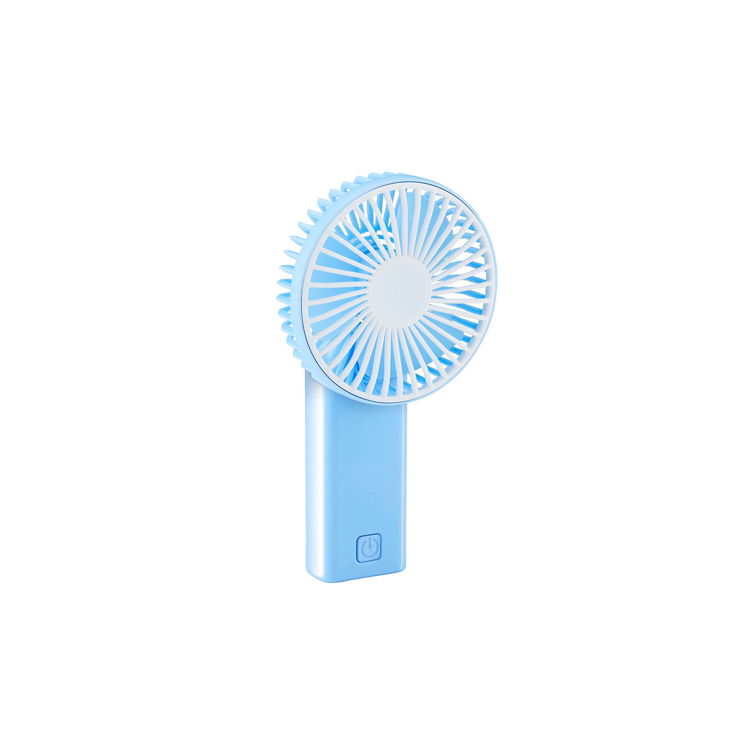 Mini ventilador de mano 2 x aa ( no incluidas) con cabezal multiposición color azul medidas: 9 x 4,5 x 15,5 cm, presentado en expositor de 12 uds