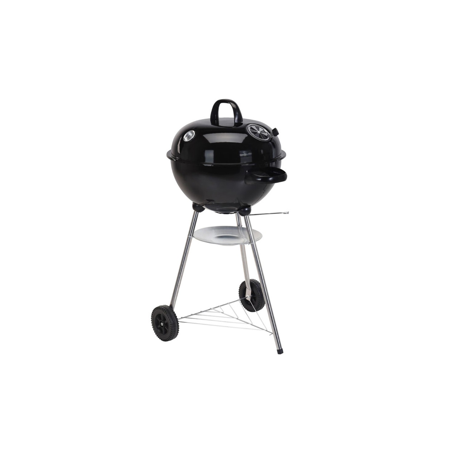 Barbacoa esférica acabado en esmalte negro, ø47 x 90 cm, espesor 0.7 mm, altura de cocción 75 cm, parrilla de cocción cromada ø435 mm, espesor del alambre 3.0/4.0 mm, patas tubo acero inoxidable ø22 mm, termómetro celsius en la tapa, abertura de ventilación ajustable con 2 ruedas para fácil movilidad