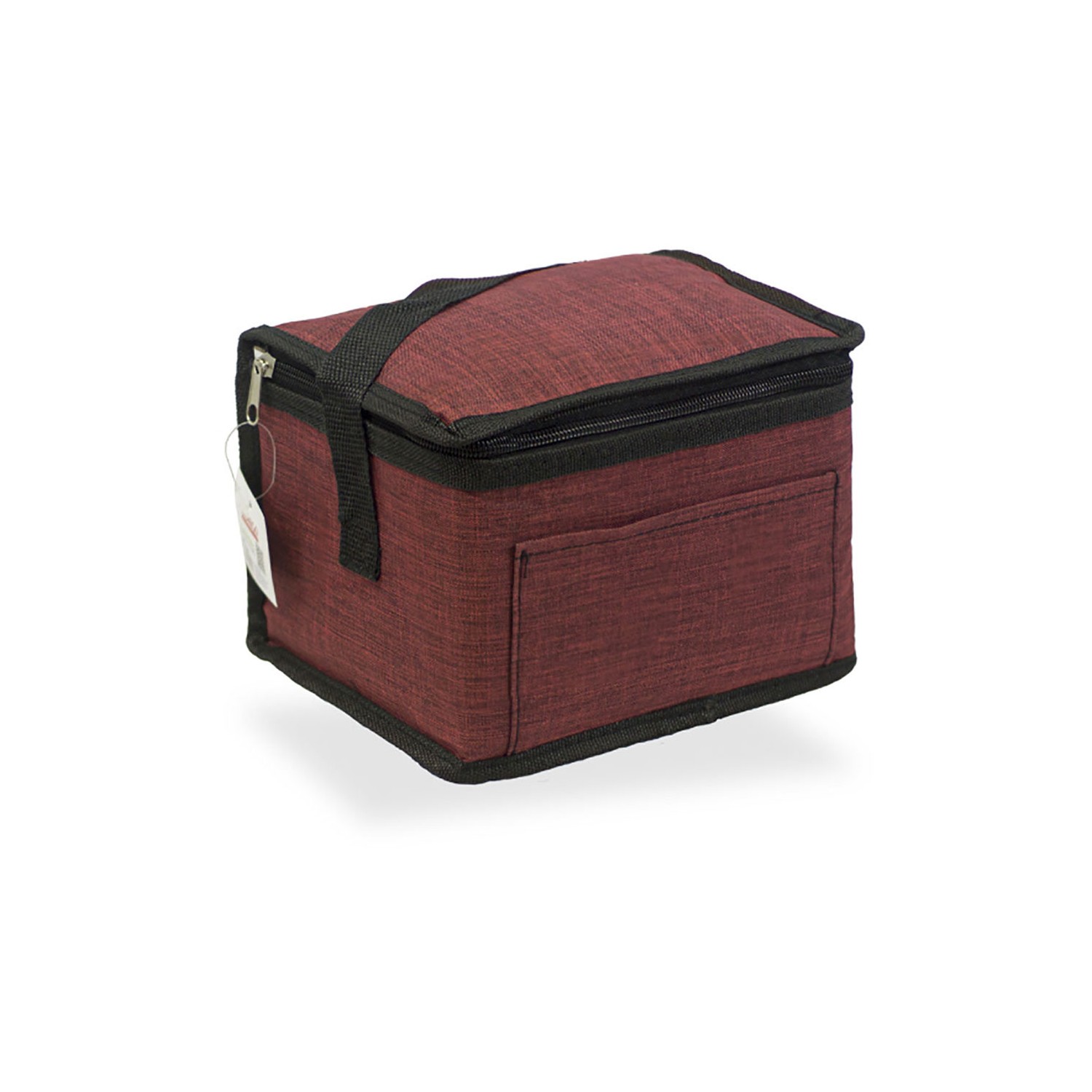 Nevera diseño tejana, color granate. 4,5 l. con correa ajustable, con aislamiento de capa de alu film y plástico protector, revestimiento con isotérmico epe de 5 mm. medidas: 20 x 15 x 15 cm