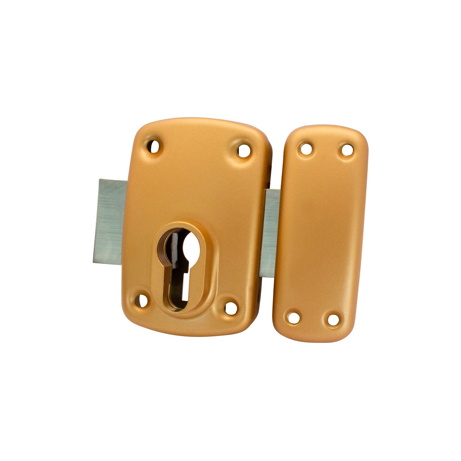 Cerrojo x5 acabado marrón. cuerpo y cerradero fabricados en acero. palanca fabricada en acero cromado, espesor de 9mm cierre con 2 vueltas, no incluye cilindro. apto para puertas de apertura izquierda o derecha. ifam