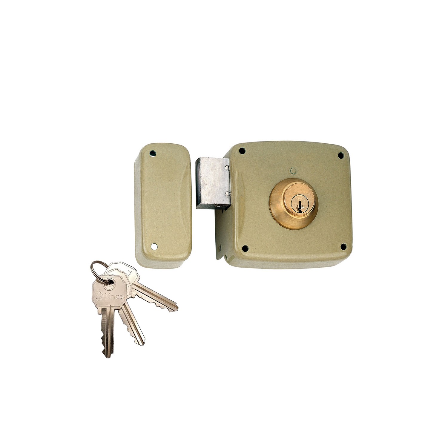 Cerradura sobreponer con cilindro 5124a entrada 100mm. mano izquierda 95124ahe10i lince cerradura sobreponer 5124a. cuando no es posible instalar una cerradura de embutir, las cerraduras de sobreponer son la solución adecuada. lince ofrece una amplia gama donde elegir. es la seguridad que se ve. serie equipada con tubo de defensa giratorio. cerradura con cierre mediante solo palanca, deslizante de 2 vueltas accionables con llave en los modelos 8 y 10, y 3 vueltas en el modelo 12 . guarda mano. se suministra con 3 llaves tipo serreta en acero níquel y un escudo embellecedor. acabados: bicapa-oro o bicapa-plata. medidas envase: 10x15x9,7cm. peso: 0,895kg.