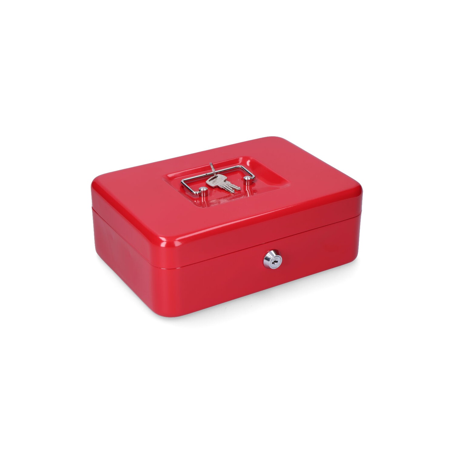 Caja de caudales cfc09.medida 250x180x90mm. incluye bandeja.dispone de asa para su facil transporte. material acero.acabado rojo. (tornillos no incluidos)