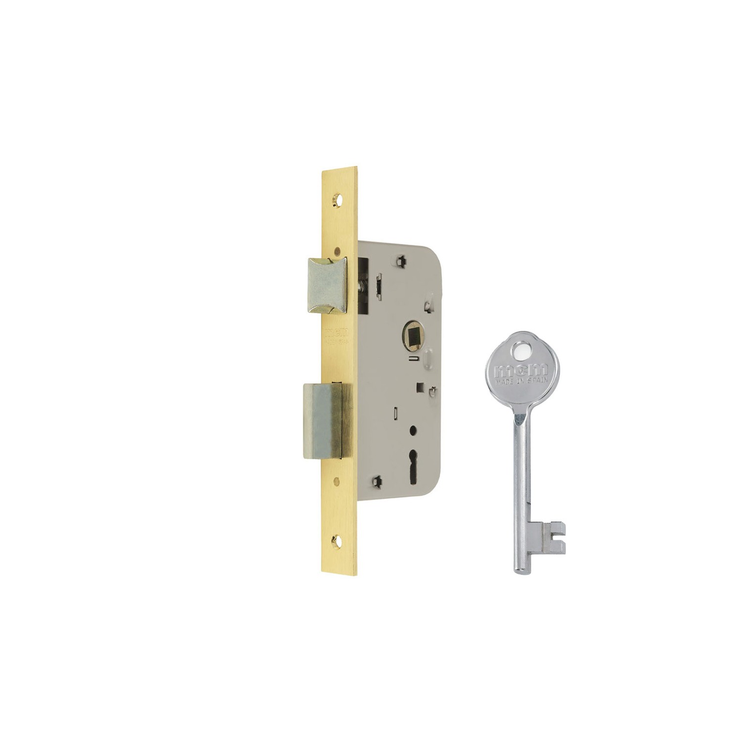 Cerradura de embutir 1 punto 1508-2-45 mcm cerradura de picaporte y palanca con llave de borja y medida entre ejes 58mm acabado latón. entrada 45.contiene 1 llave de borjas