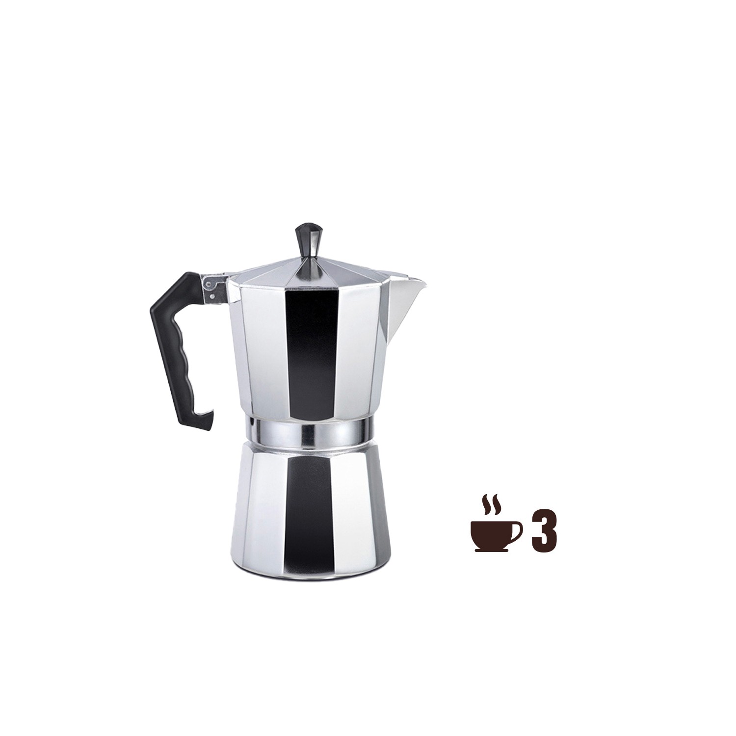Cafetera de aluminio 3 tazas. apta para gas, vitroceramica y placa electrica. fabricada segun normativa ue de productos en contacto directo con los alimentos