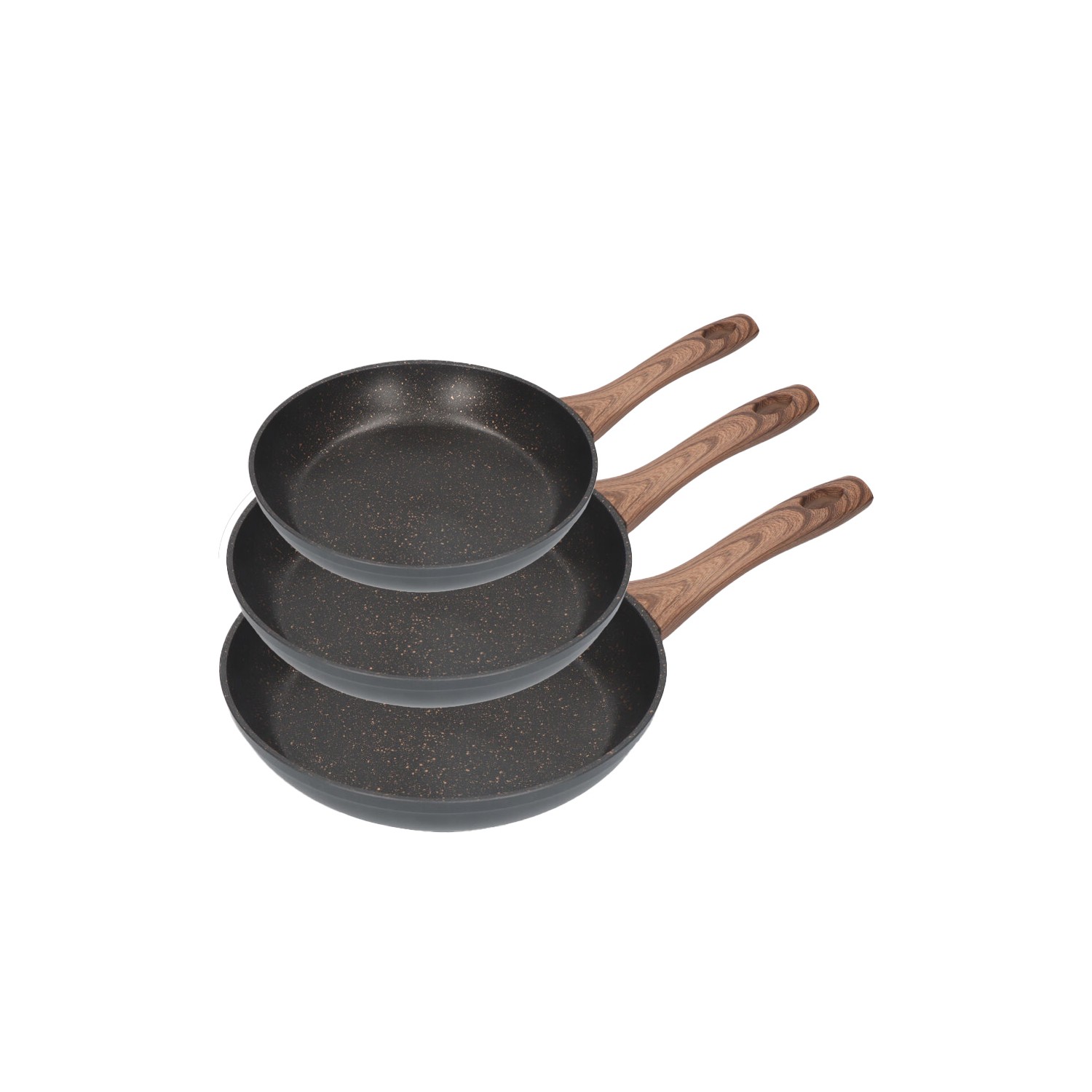 Set de 3 sartenes antiadherentes "serie eneas" gourmet kitchen: incluye sarten de ø20x4,5cm, ø24x4,7cm, ø28x5,5cm. apta para inducción, vitrocerámica, gas y placa eléctrica.