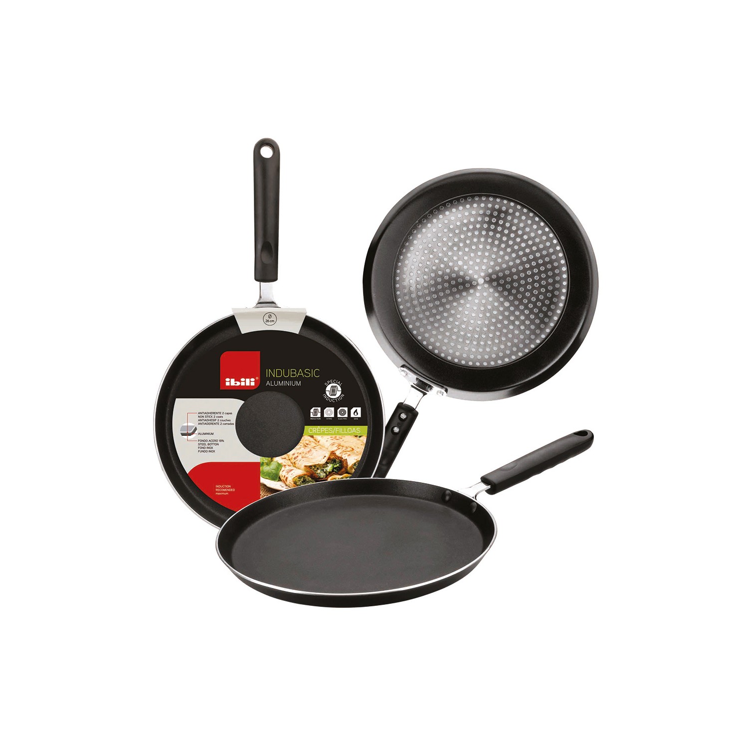 Crepera de aluminio para inducción, vitro, gas, eléctrico con mango de baquelita sin pfoa. medida: 26 cm