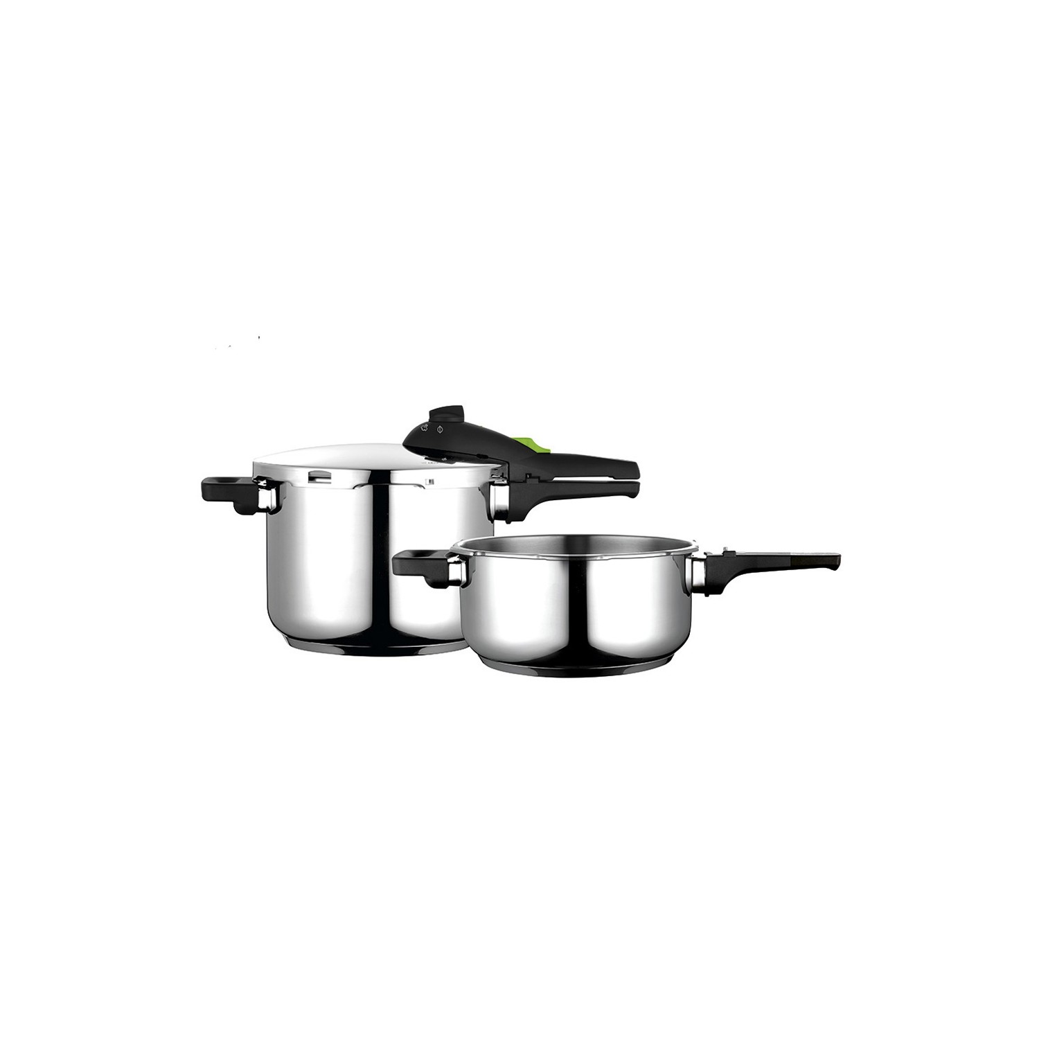 Olla super rápida rapid 4+6l inoxidable 18/10 fagor. 2 niveles de presión: rapido 60kpa y super rapido 100kpa. 5 sistemas de seguridad incluido bloqueo automatico de la tapa. fondo temodifusor impaksteel de maxima resistencia que optimiza la conductibilidad térmica. mangos ergonómicos de baquelita termoaislante. apto para todos los fuegos. 4l ø22x12cm 6l ø22x17cm (diámetro/alto)
