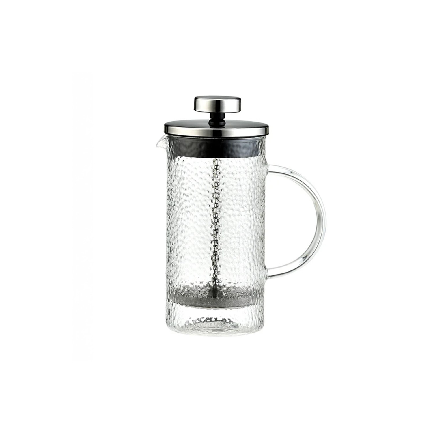 Cafetera / tetera údine embolo 350 ml, 3 tazas. vidrio borosilicato con textura, resistente a las altas temperaturas, con tapa y filtro de acero inoxidable. se puede utilizar para preparar té e infusiones