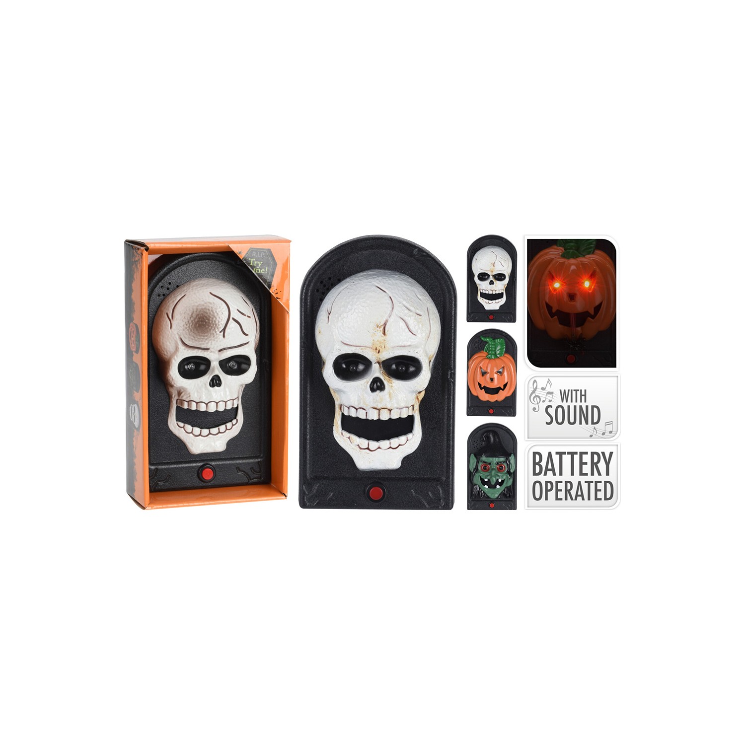 Timbre halloween, con luz y sonido, funciona con pilas 3 x aaa incluidas, modelos variados, 11 x 4,5 x 19 cm