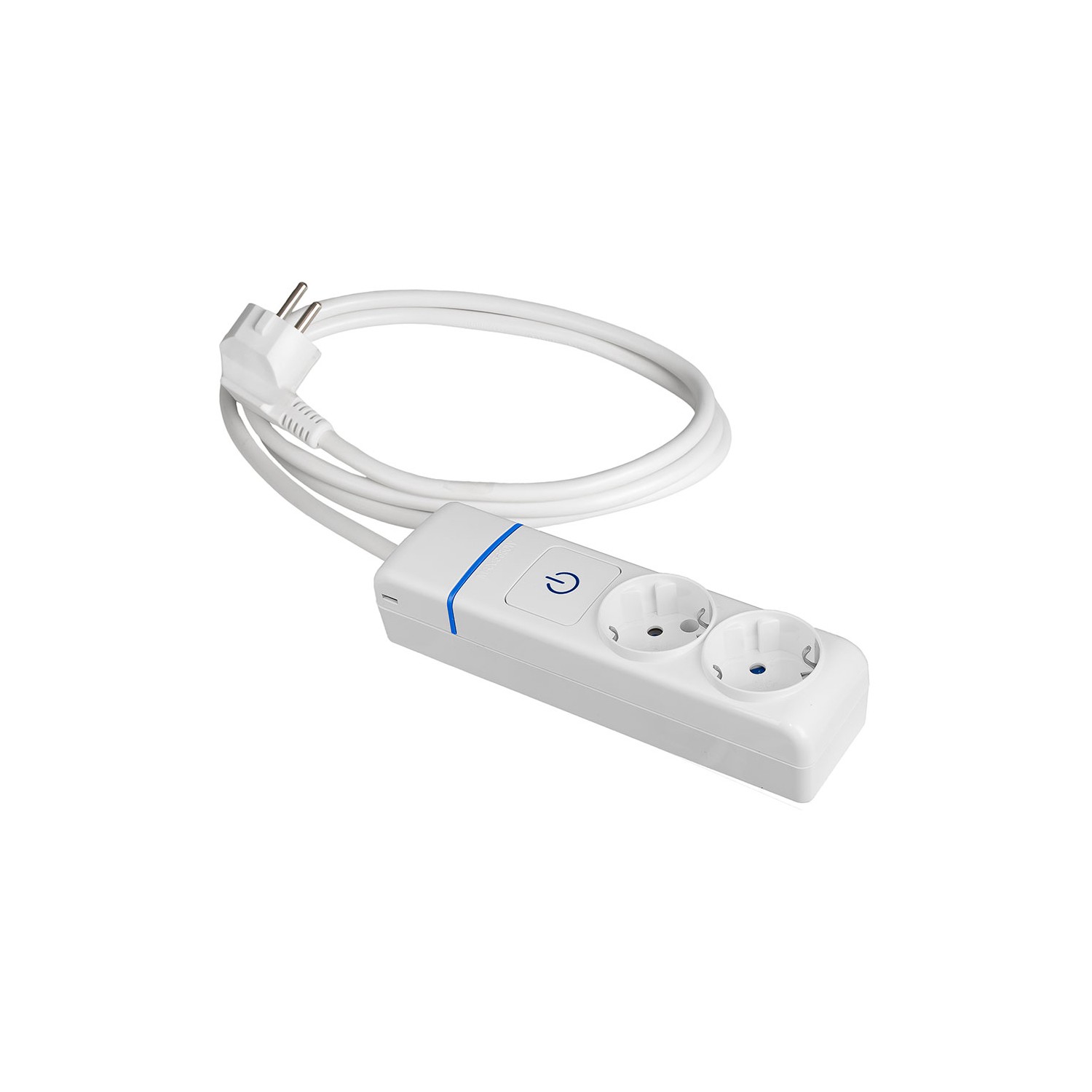 Máx3680w. con interruptor luminoso azul. 1,5m de cable h05vv-f 3g1,5mm² .color blanco. ip20. con agujeros para fijación por tornillos a la pared y orificios para fijación mediante bridas a tubos. fabricado en policarbonato. serie ion.