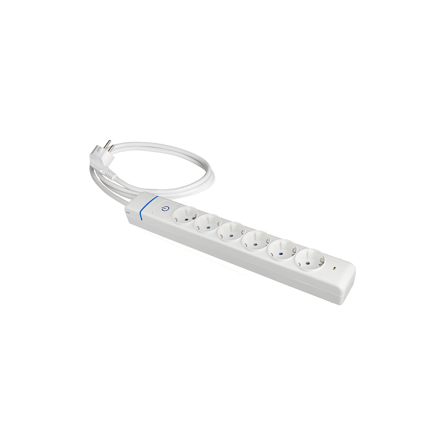 Máx.3680w.con interruptor luminoso azul. 1,5m de cable h05vv-f 3g1,5mm² .color blanco. ip20. con agujeros para fijación por tornillos a la pared y orificios para fijación mediante bridas a tubos. con protección para sobretensiones. fabricado en policarbonato. serie ion.