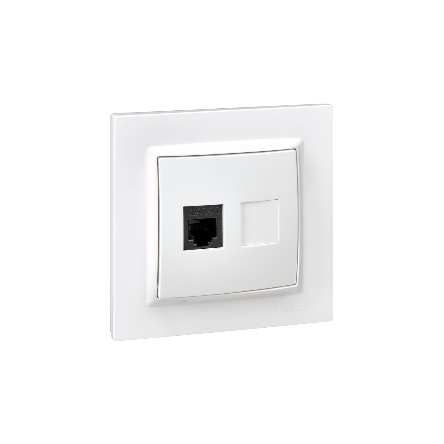 Toma teléfono blanco serie 10. medida 8,4x8x4 cm. enclavamiento 2,5 cm. con marco.