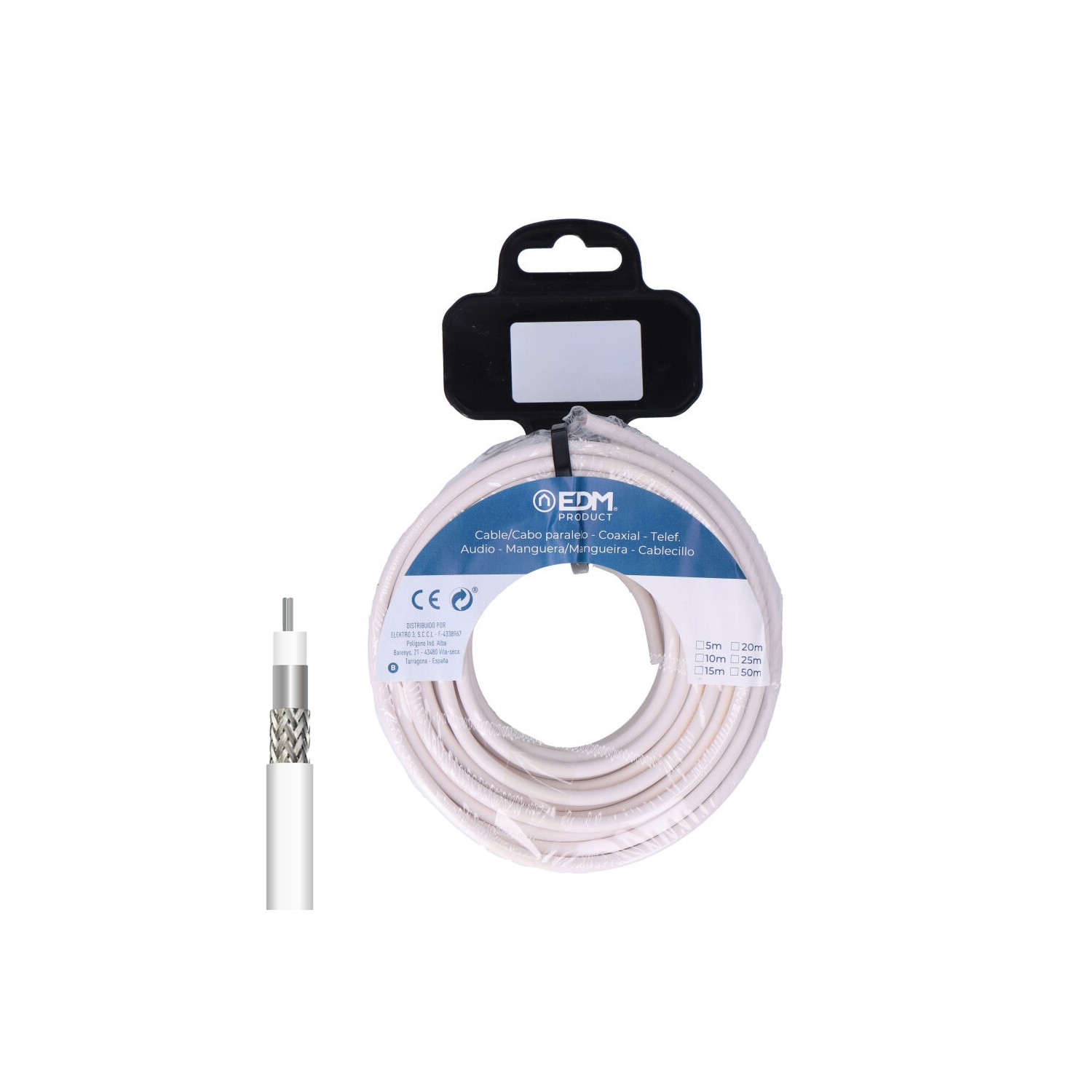 Carrete cable coaxial apantallado aluminio 5 m. impedancia 75 ohm capacitancia: 54 pf/m. velocidad de propagación: 85%. pérdida: 20db min (5-2300mhz)