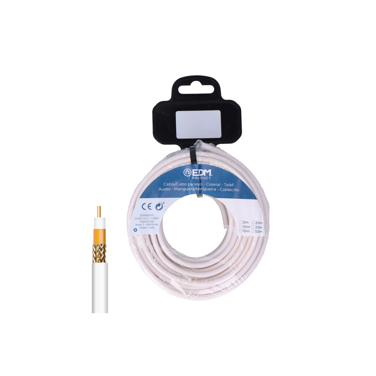 Carrete cable coaxial apantallado 100% cobre 10 m. impedancia: 75 ohm. capacitancia: 54pf/m. velocidad de propagación: 85%. pérdida: 20db min (5-2300mhz)