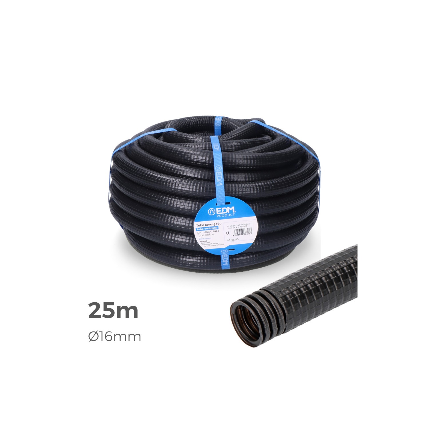 Corrugado para exterior, medida interior ø16mm, medida exterior ø25mm, longitud 25m ce