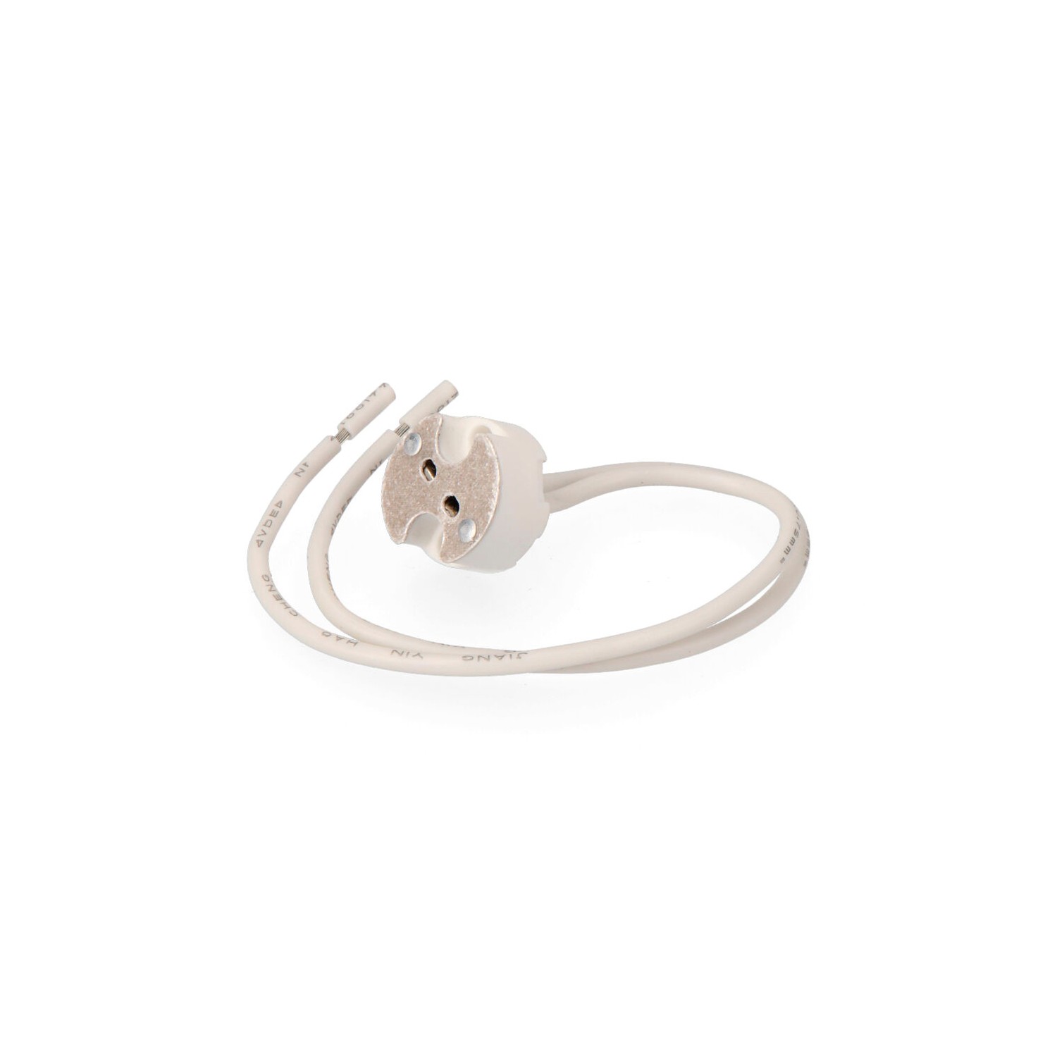 Portalámparas halógeno mr-16 bi-pin de interior 4a 24v de esteatita fijación a presión cable de 15cm blanco (envasado)