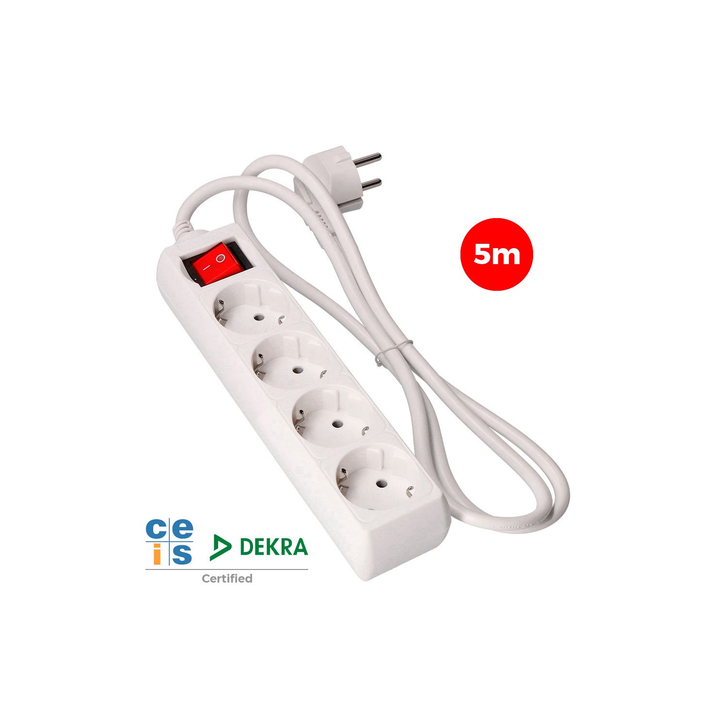 Prolongador con 4 tomas 2p+t, schuko, 16a 250v~, máximo 3680w con interruptor luminoso, 5 m de cable h05vv-f 3g1,5mm² blanco