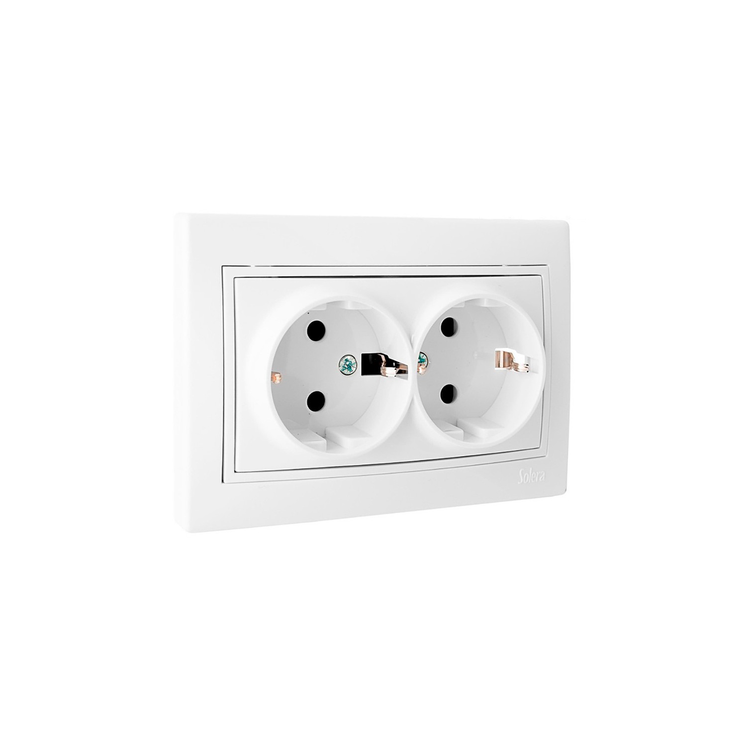 Base doble de enchufe t/tl con obturador 16a 250v 154x81x10mm embornamiento por tornillo. blanco. mecanismo completo. serie europa solera erp60/2u