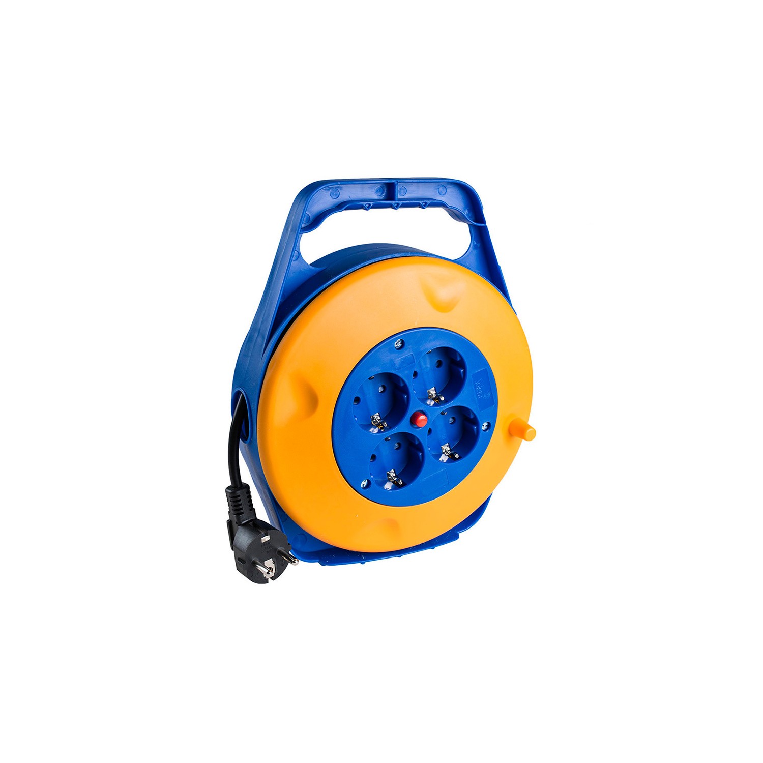 Enrollacable 10m 3x1mm con 4 tomas bipolares con t/tl solera. potencia maxima admisible extendido 3000w, potencia maxima admisible enrollado 1000w. 2p 16 a 250 v. tipo de cable h05vv-f 3x1mm. 7412/1