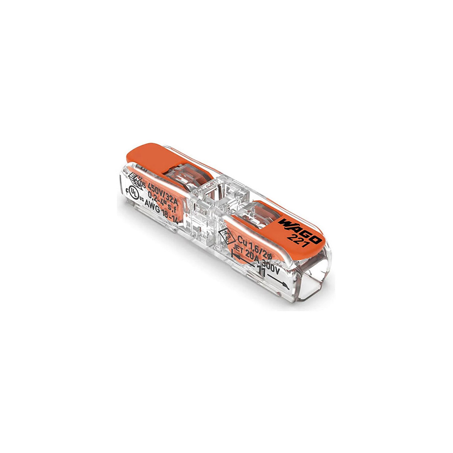 Conector rápido en linea con palanca, para 2 conductores rígidos, semirígidos o flexibles de cobre, diámetro entre 0,2 a 4 mm², 450 v, 32 a temperatura máxima 85°c policarbonato transparente 8,1 x 35,5 x 8,9 mm