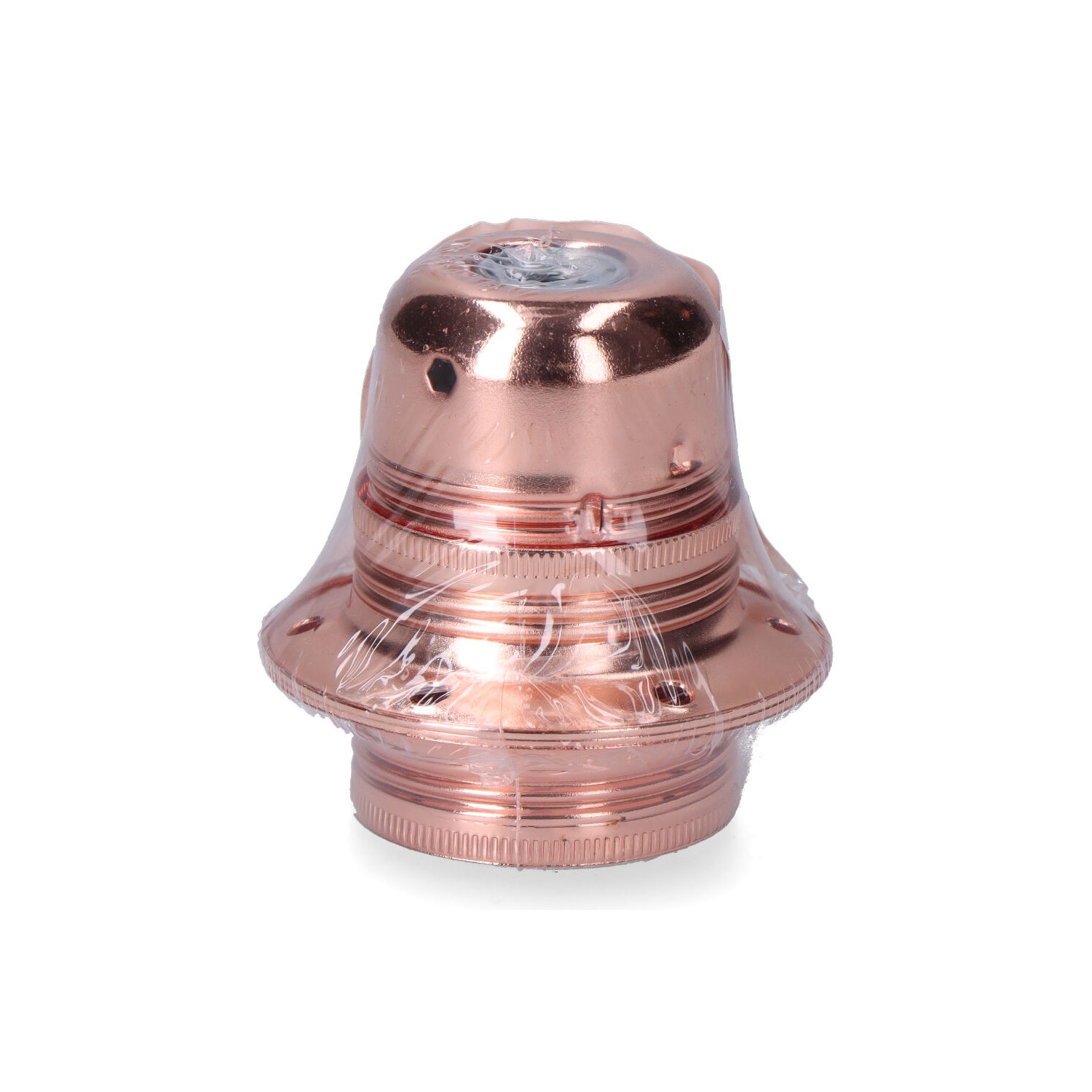 Portalámparas de metal de color rosado con dos arandelas que permite colocar una pantalla y bombillas con rosca e27, ø60 x 40 mm (retractilado)