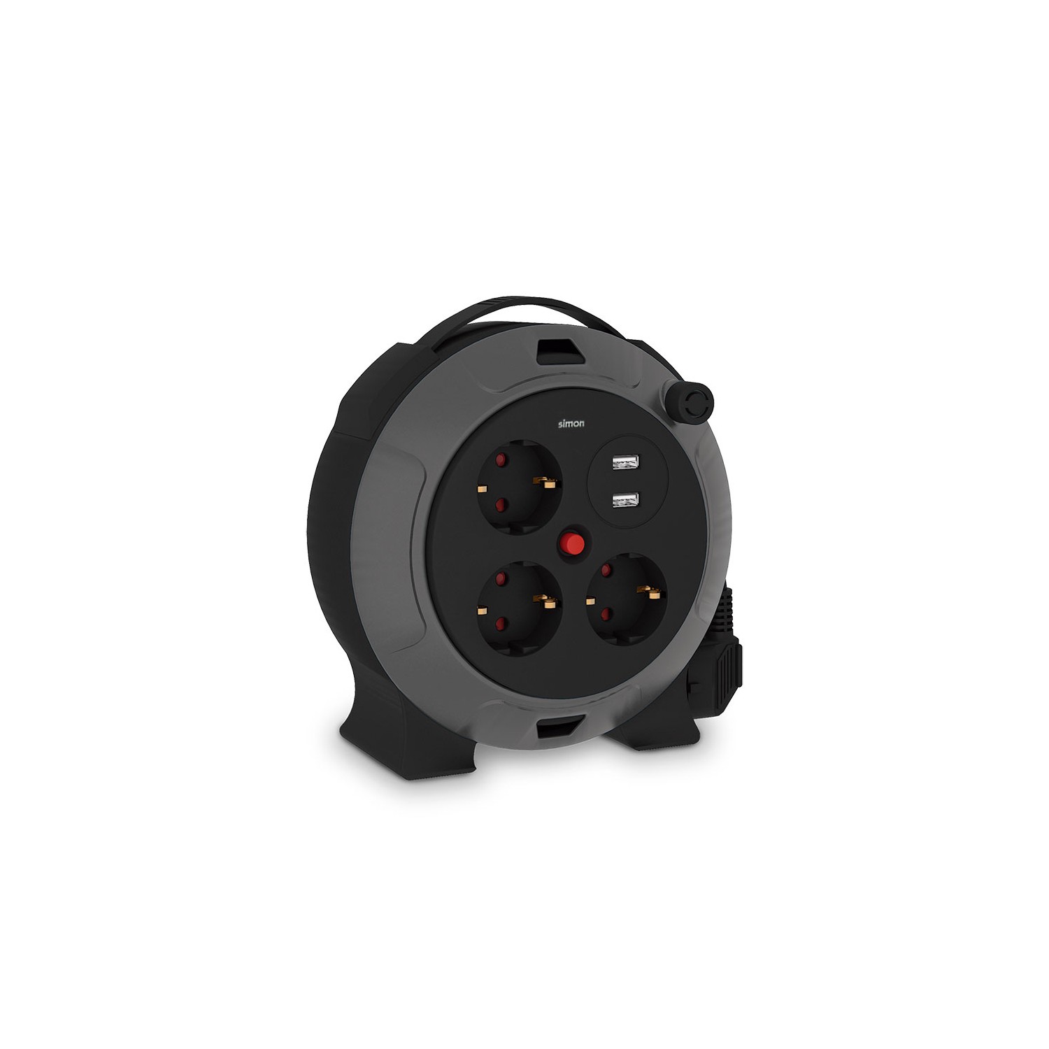 Extensible + 2 usb a, 3 tomas 2p+tt schuko 16 a 230 v~50 hz, 3680 w, cable: h05vv-f 3 g 1,5 mm², 5 m. ip20, usb: 5,0 vdc 2,4 a 12 w. negro/gris. 19,6 x 9,4 x 18,7 cm