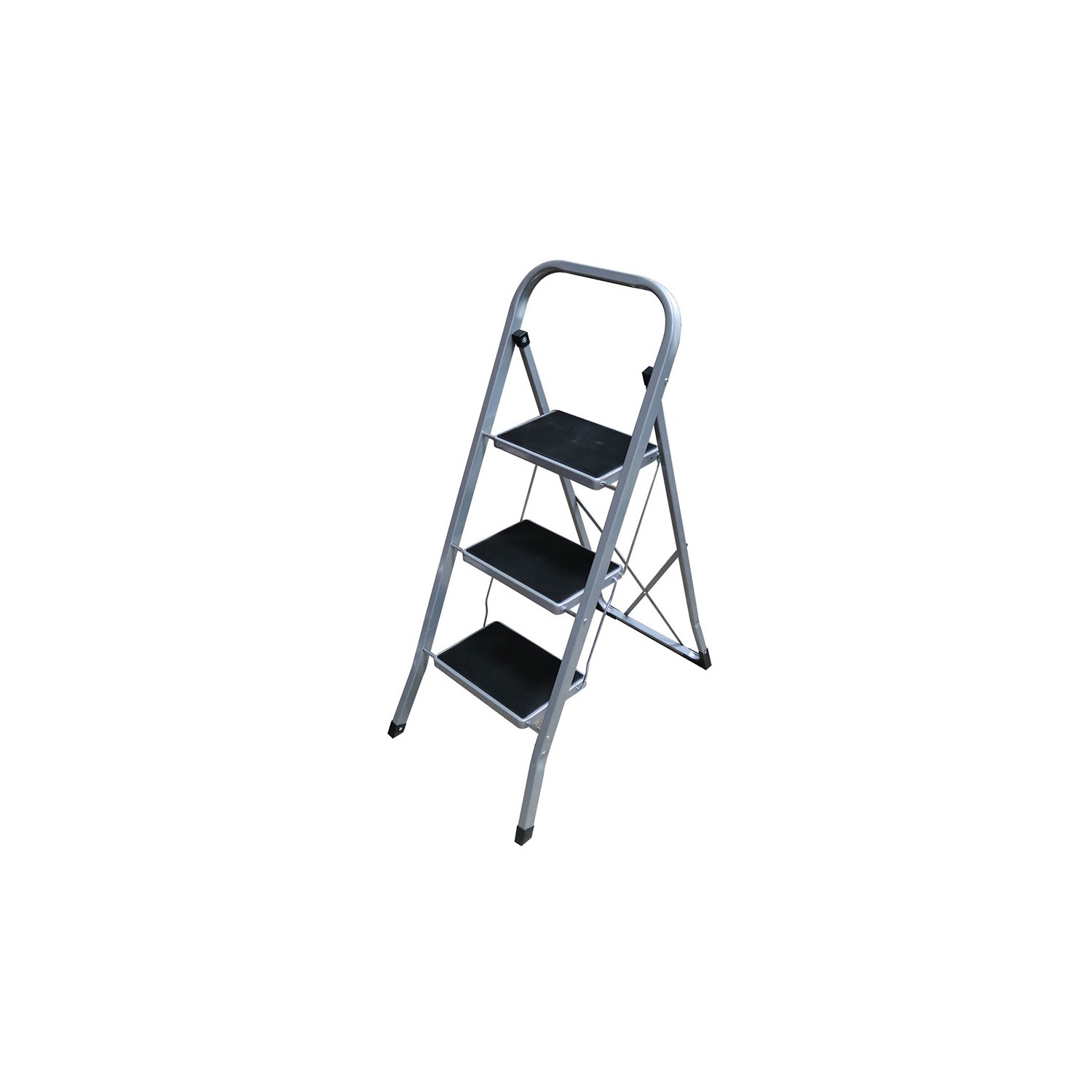 Escalerilla de acero 3 peldaños. plataforma de acero y alfombrilla antideslizante de 27,5x17,5cm., sistema de seguridad antiapertura, conteras de pe con relieves antideslizantes. dimensiones: 47x71x105cm. altura del último peldaño 0,70 cm