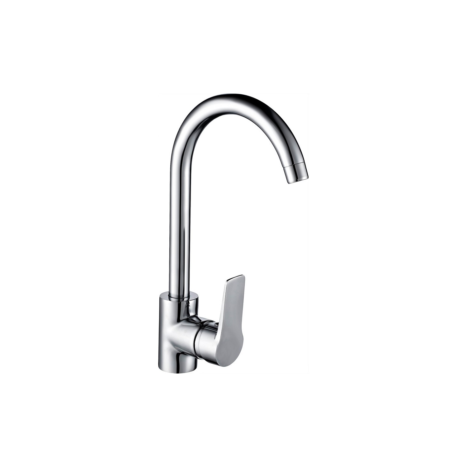 Grifo monomando de cocina. caño alto serie altea color cromado. material: cuerpo de latón, con mango de zinc. cartucho cerámico. medidas: 15 x 24,8 cm. incluye: 2 latiguillos de conexión y accesorios de fijación
