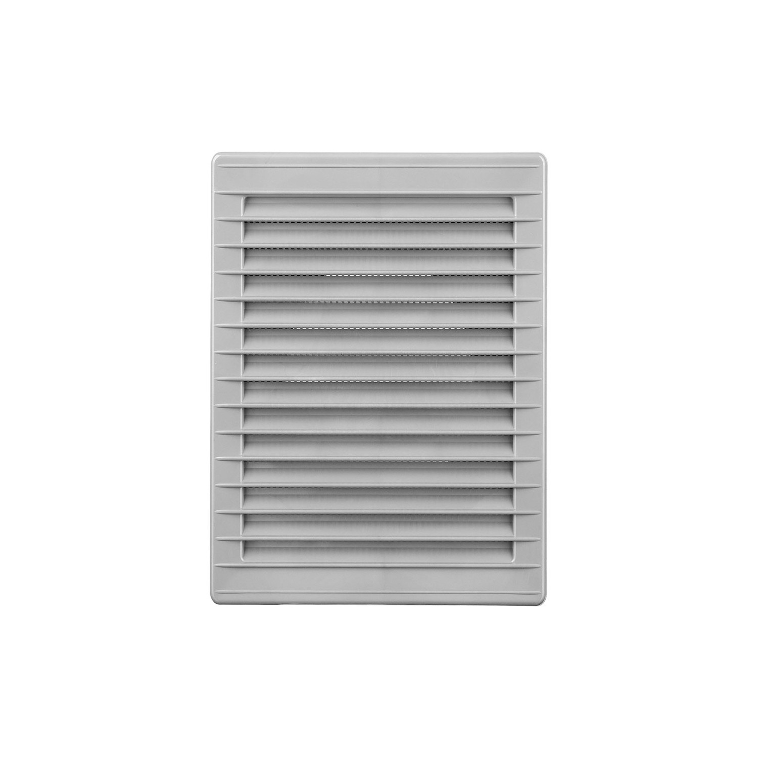 Rejilla ventilacíón rectangular de plástico empotrable con mosquitera, medida enclavamiento 135x205mm, medida 17x23mm gris