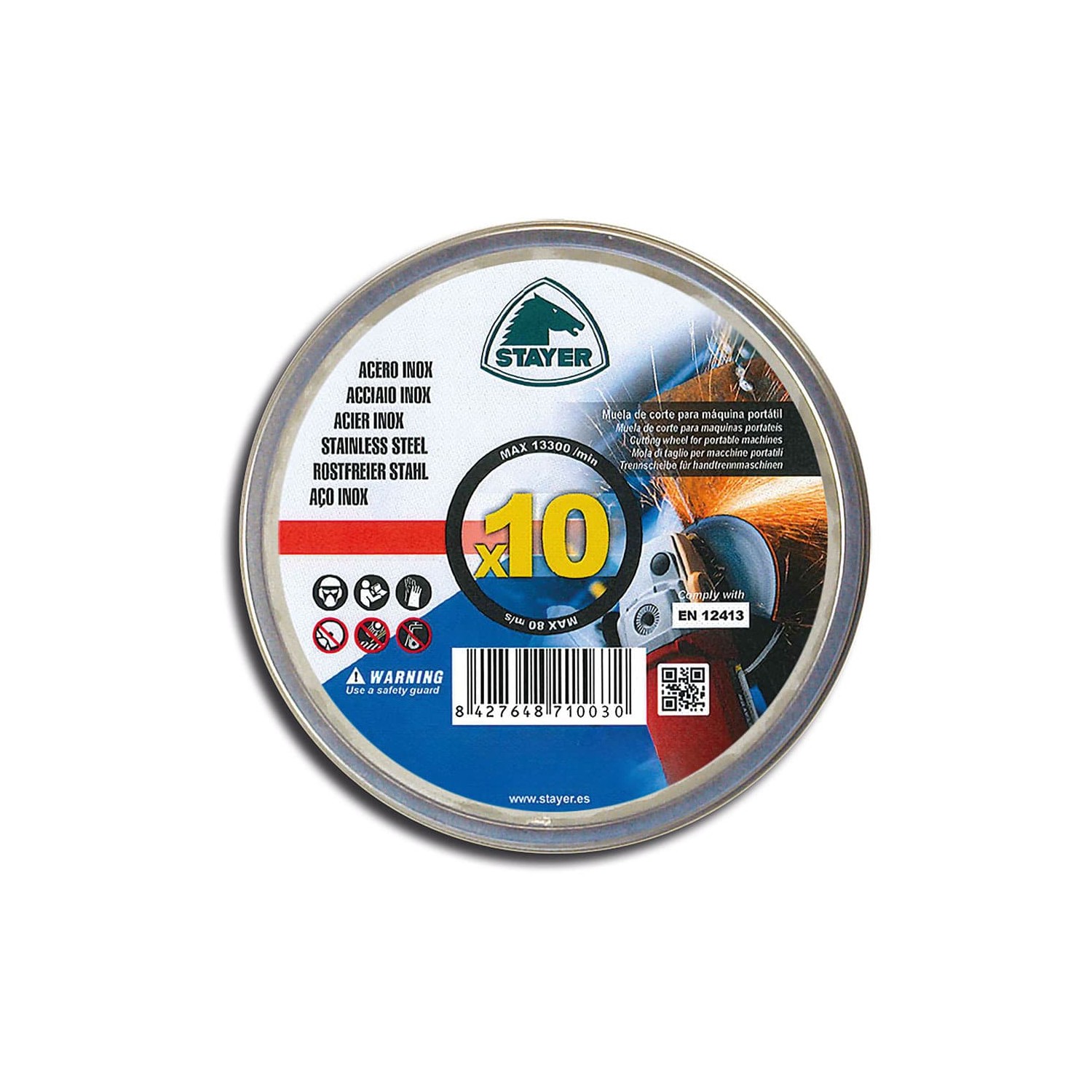 Disco extrafino inox standard, pack 10 uds, ø115 x 1,0 x 22,23 mm. corte de acero inoxidable, acero, hierro y materiales ferrosos. gran velocidad de corte y calidad de acabado