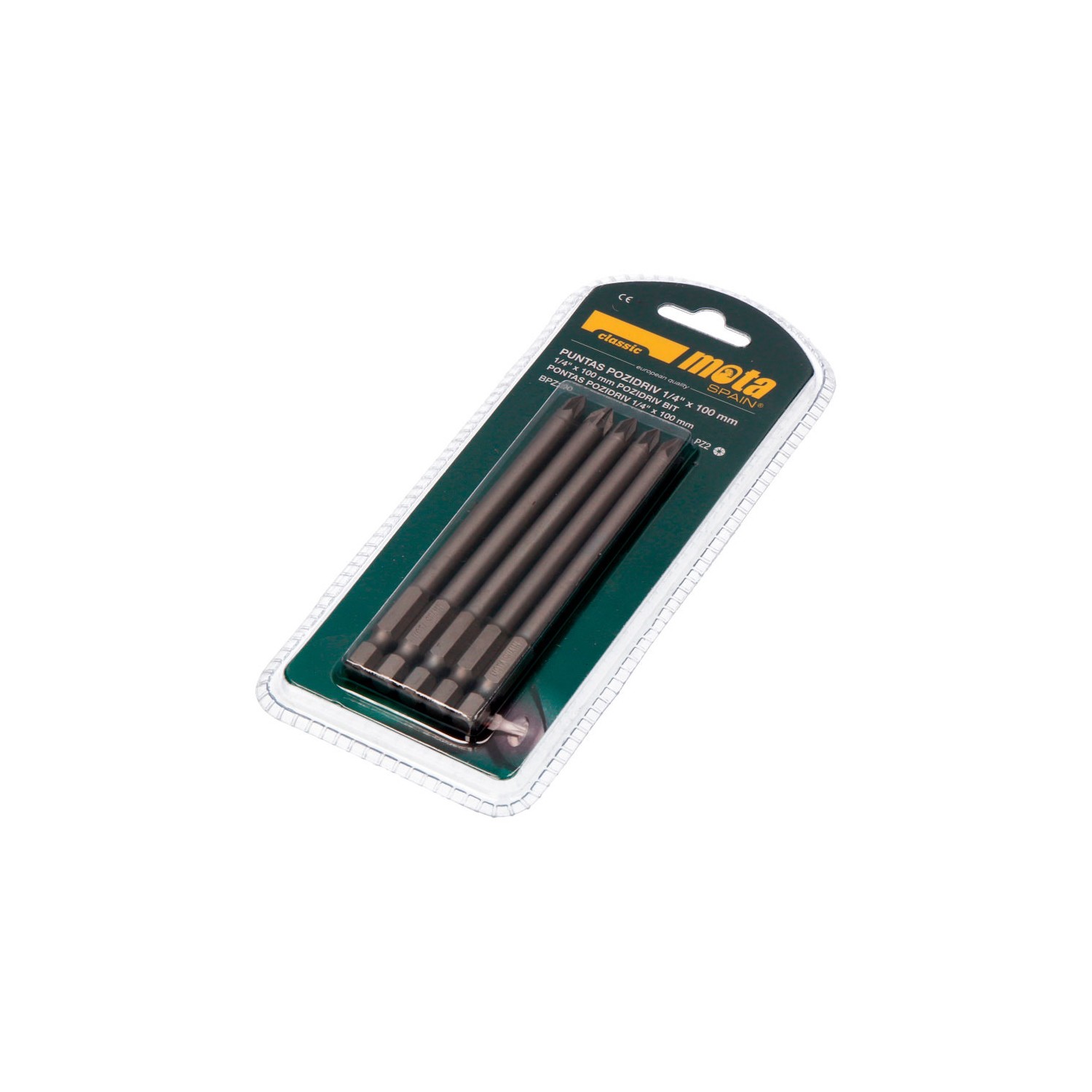 Pack 5 puntas bit pz2 x 90mm 1/4" acero bpz290 mota