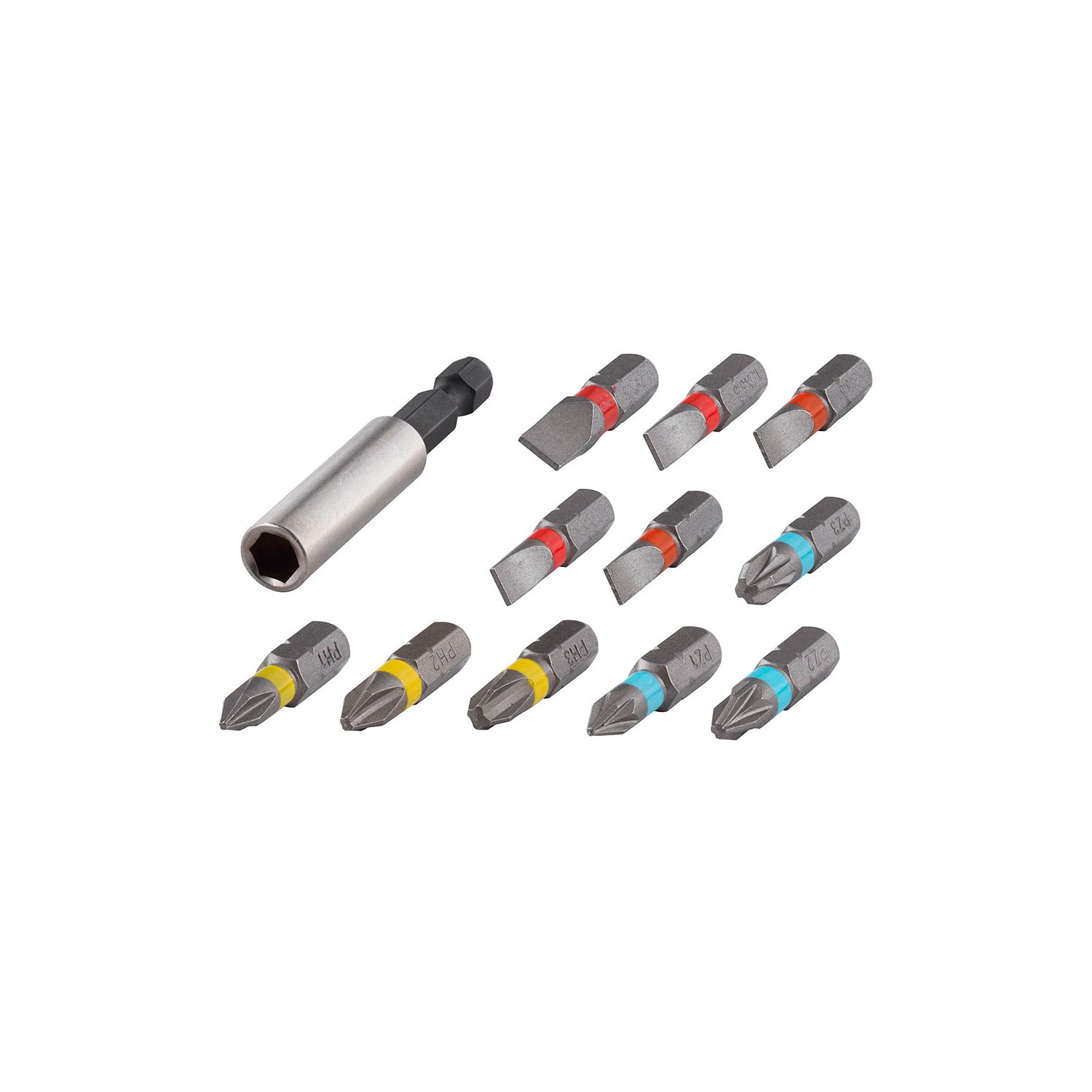 Juego de puntas solid, con portapuntas magnético no. 2426 y 11 puntas ranura 0,6x4,5mm + 0,8x5,5mm + 1,0x5,5mm + 1,2x6,5mm + 1,6x8,0mm phillips no. 1 + 2 + 3, pozidriv no. 1 + 2 + 3 wolfcraft