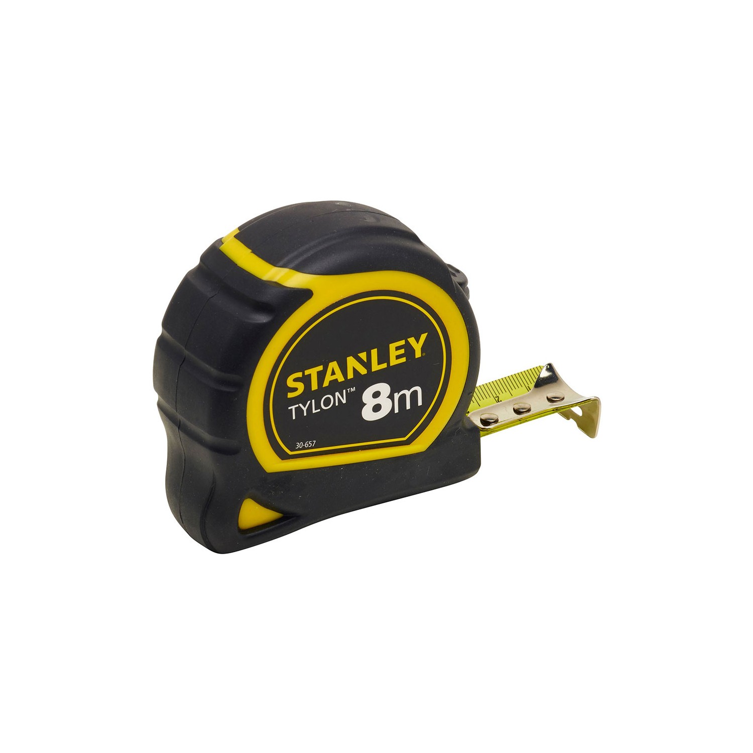 Flexómetro tylon 8m x 25mm granel. flexómetro de cinta de acero ultra resistente con revestimiento tylon que aumenta hasta un 50% la durabilidad de la hoja. revestimiento mate de la cinta que facilita la lectura sin brillos. diseño compacto de la caja con foma ergonómica, máximo confort y fácil manejo. gran resistencia a los golpes gracias a la caja 100% contorneada de caucho que protege la cinta. stanley