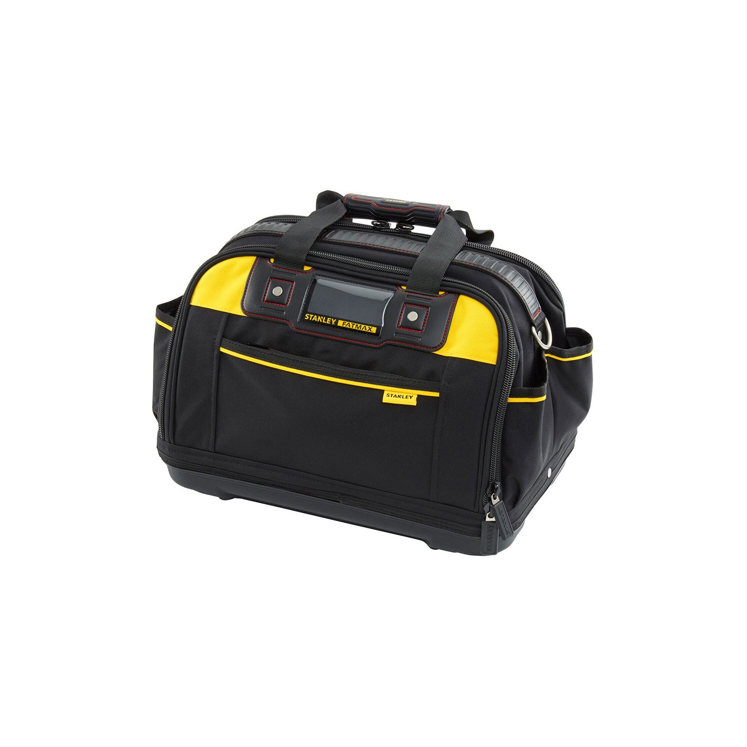Bolsa de gran abertura de múltiple acceso 41cm fatmax. bolsillo frontal con cierre, para mayor seguridad. asa ajustable con almohadilla para el hombro, fácil y cómodo de llevarestructura rígida estable, no se pliega: permite un fácil acceso a las herramientas en todo momento. dos comportamientos principales separados de gran abertura, gran espacio de almacenamiento para herramientas eléctricas y manuales. fácil acceso a las herramientas y visibilidad total, permite trabajar con la bolsa como estación de trabajo. múltiples bolsillos internos y externos, organización máximasólida base de plástico reforzado, protege de las superficies mojadas y sucias