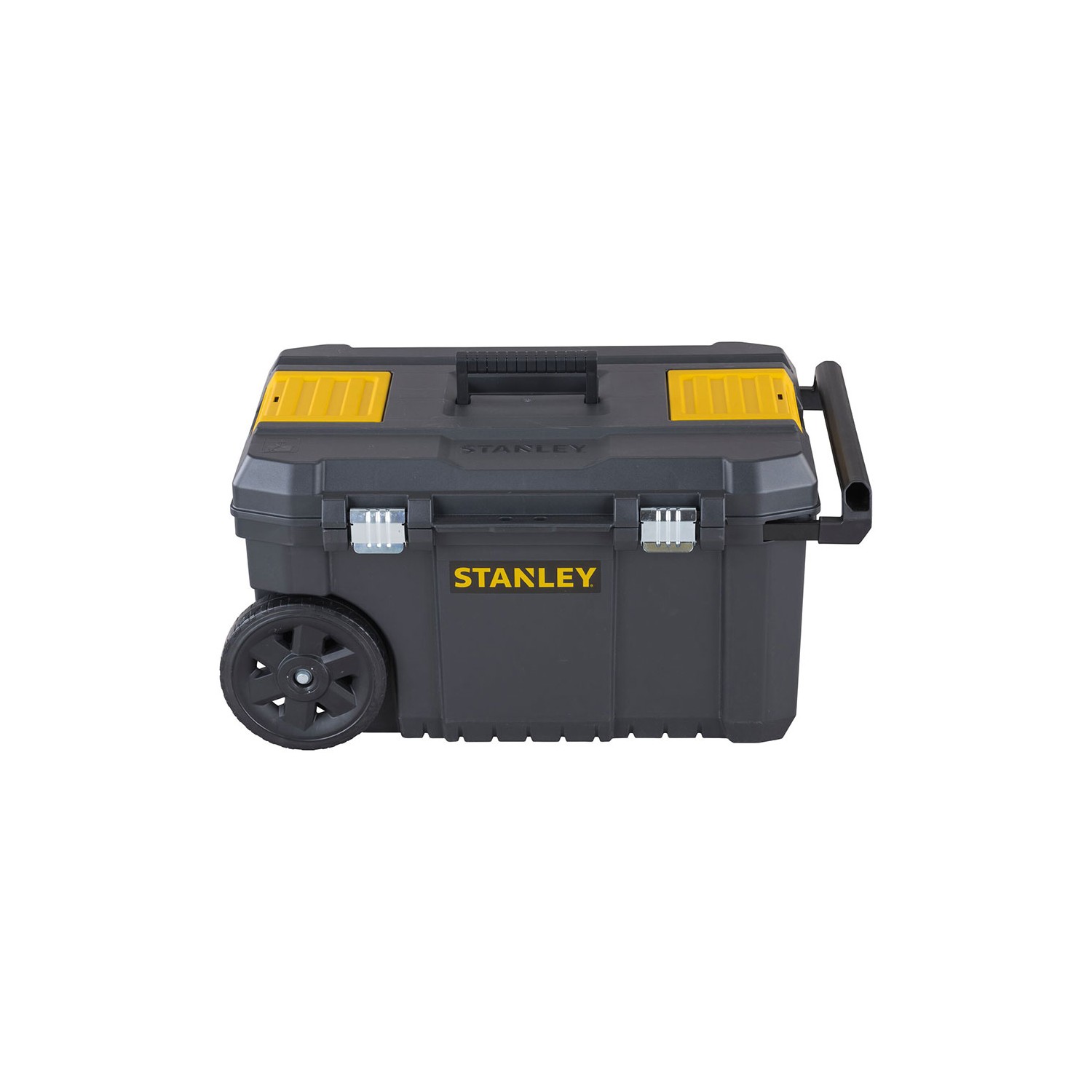 Arcón 50 l essential con asa metálica con zona de agarre de plástico. cierres metálicos geométricos con bloqueo para mayor seguridad. organizadores en la tapa para pequeñas piezas. bandeja interior extraíble para una mejor organización de las herramientas manuales. ruedas de 18 cm para un mejor manejo y mejor maniobrabilidad