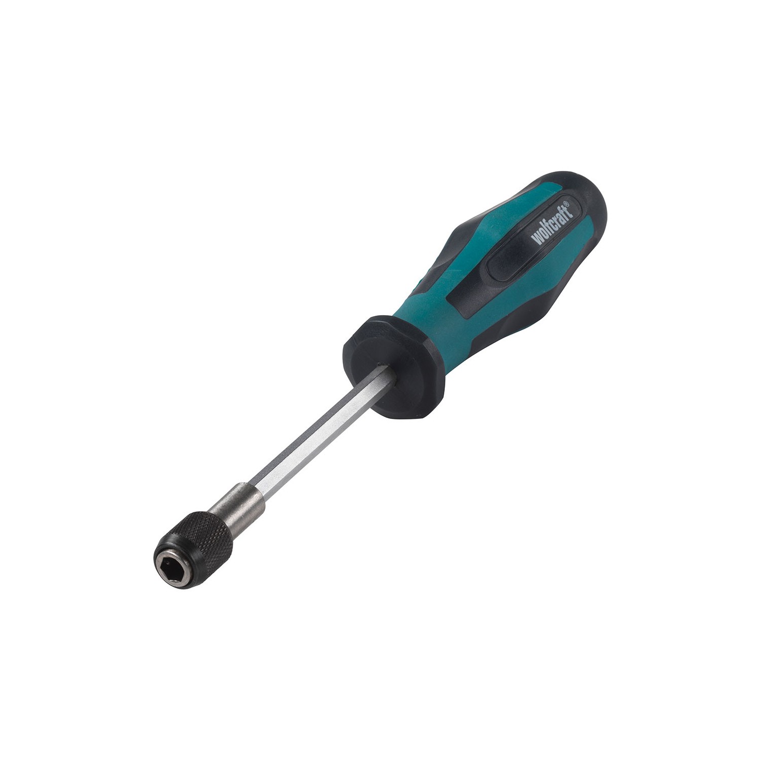 Atornillador manual con portapuntas, largo para atornillar en profundidad longitud del producto: 197mm atornillador manual con portapuntas magnético y vástago extralargo mandril de cambio rápido con enganche hexagonal de ¼ mango de 2 componentes ergonómico peso: 0,112kg 8725000 wolfcraft"