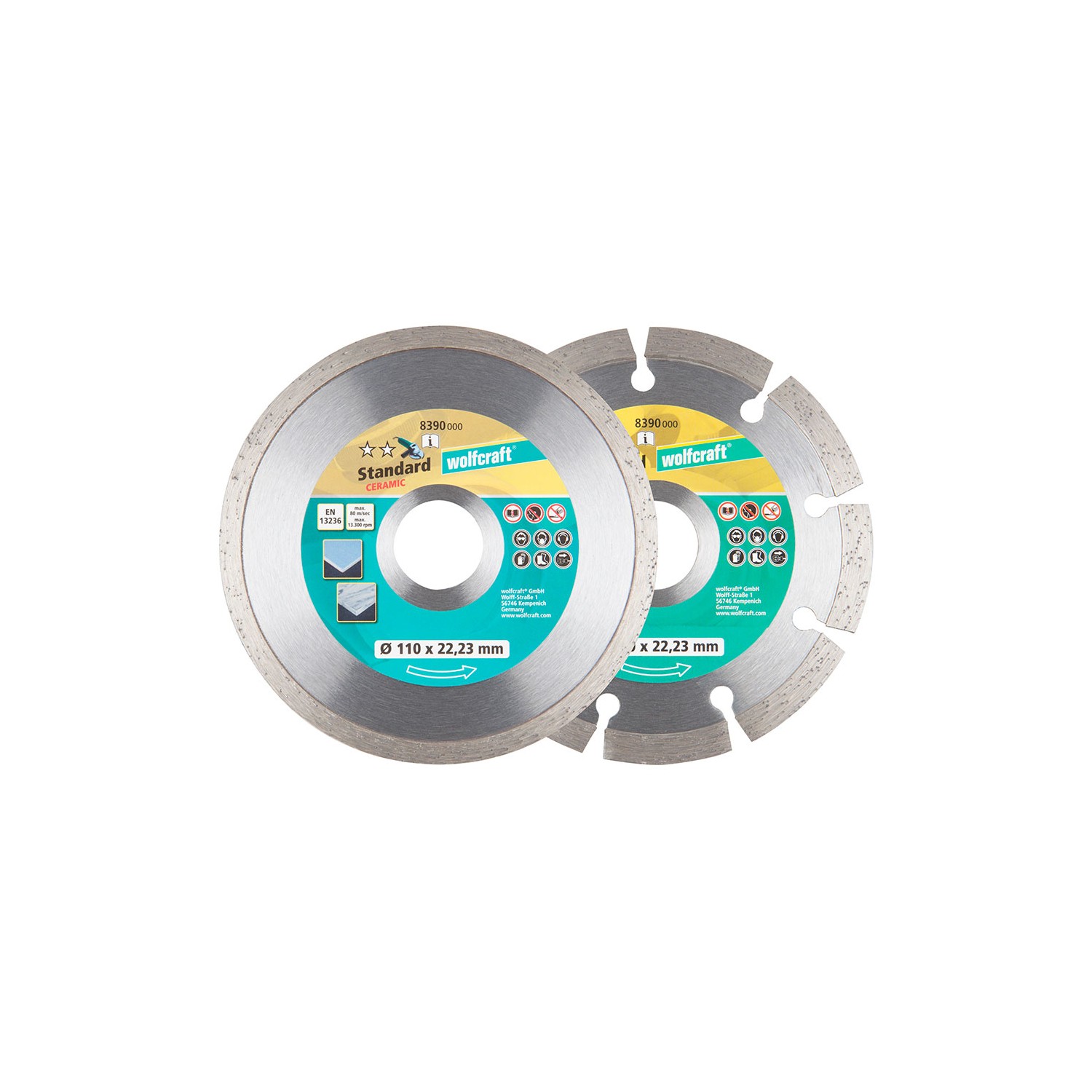 Disco diamantados de corte la alternativa económica - ideal para todos los principiantes y bricoladores ocasionales piezas en el juego: 2 piezas contenido: 1 disco segmentado para cortar ladrillos, piedra natural y baldosas de cemento y 1 disco para azulejos para cortes lisos y limpios en mármol, azulejos y baldosas de cerámica diámetro de trabajo: ø110mm alojamiento del agujero: 22.23mm altura de segmento: 5mm velocidad máx. de rotación: 13.300 rpm