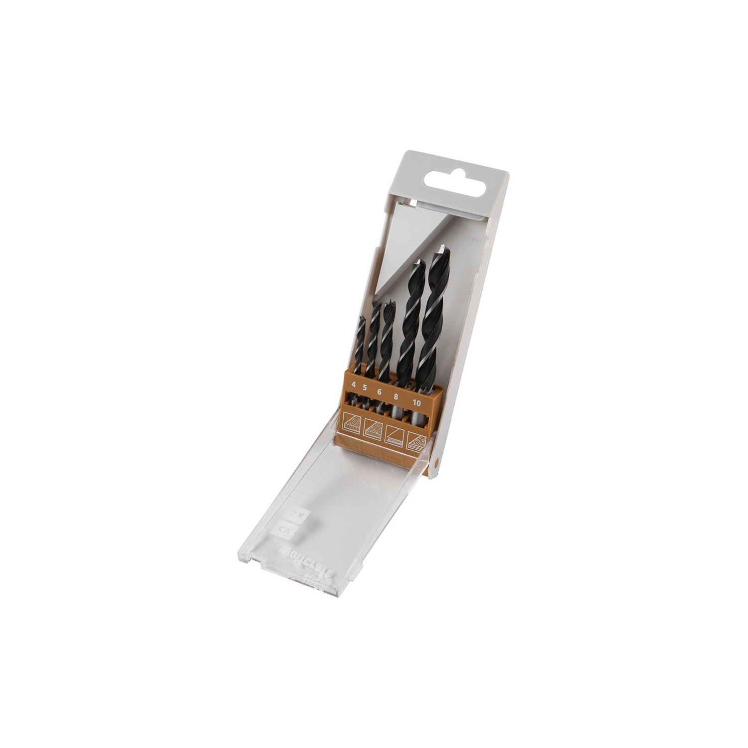 Juego de brocas espirales para madera cv de 5 piezas versión de vástago, vástago redondo diametro de las brocas ø4,00 / ø5,00 / ø6,00 / ø8,00 / ø10,00 mm