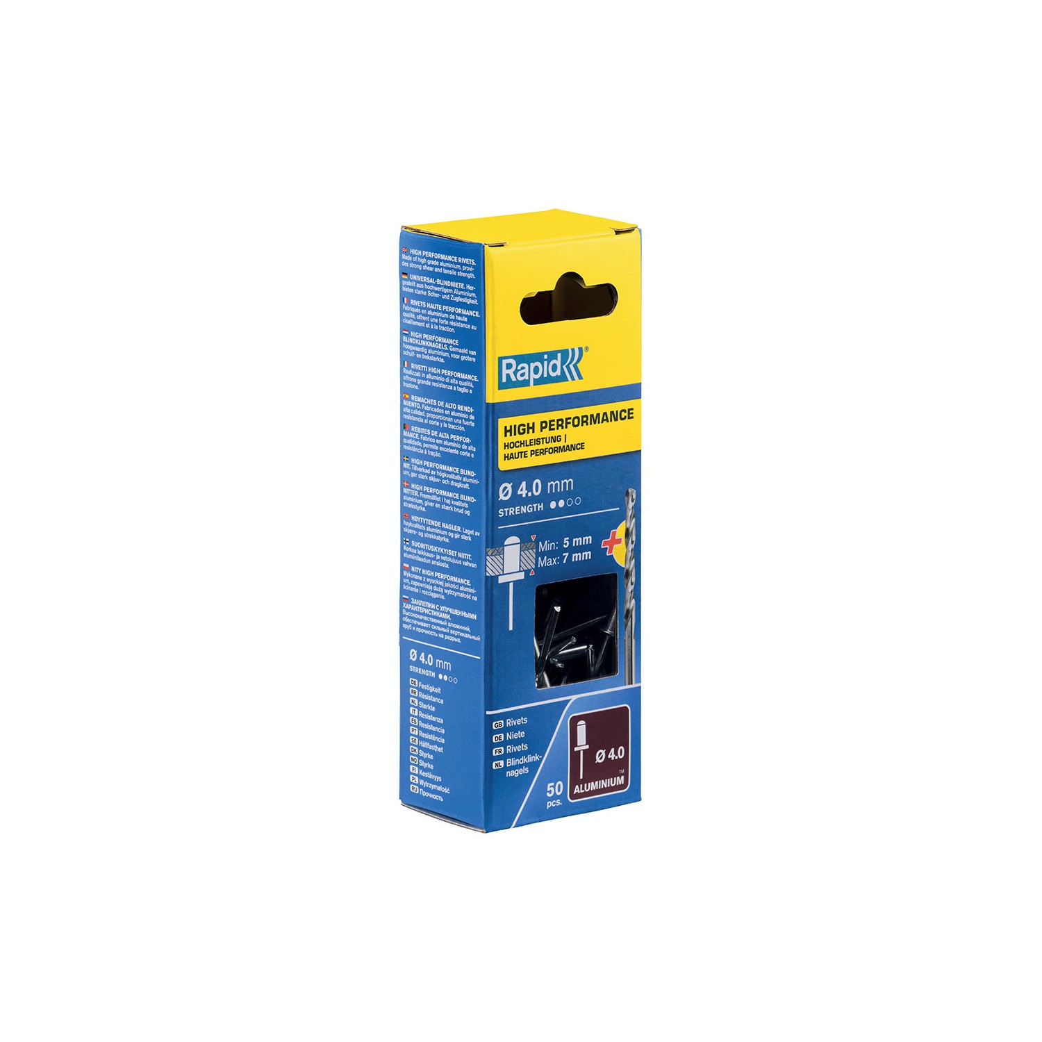 Blister 50 remaches ø4x10mm alu+broca 5001459 rapid. estos remaches de aluminio de alto rendimiento son perfectos para fijar materiales que se encuentren en lugares expuestos, como guardabarros, revestimientos de metal y plástico, señalizaciones y placas metálicas. en el embalaje se incluye una broca del tamaño adecuado.