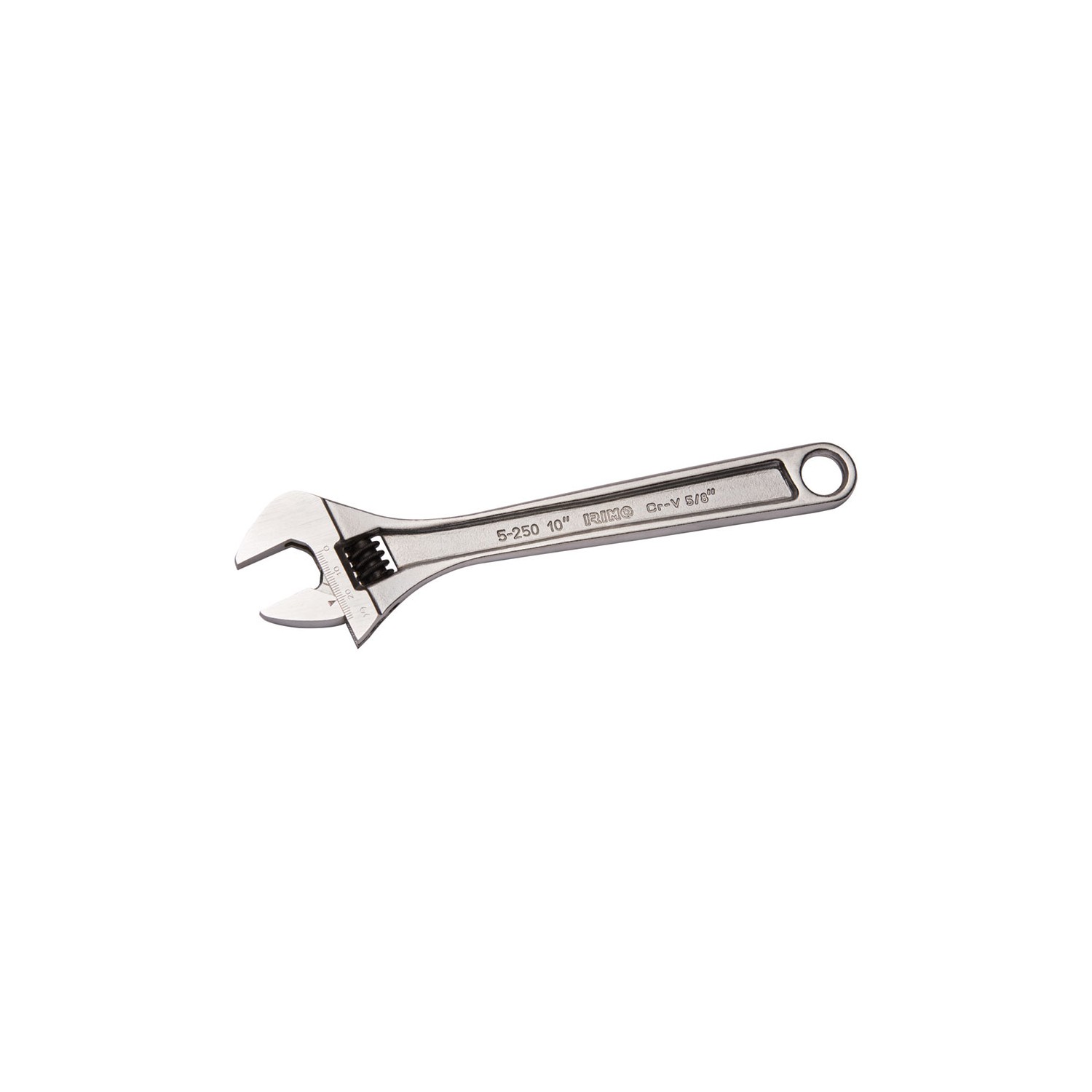 Llave ajustable (inglesa) de moleta central 10 cromada 5-250c-1. lamordaza no se cae aunque la llave se abra al máximo. escala en mm para prefijar y realizar mediciones precisas. en paralelo con un ángulo de 15°, las mordazas ofrecen un agarre firme y el mejor alcance. aleación de acero de alto rendimiento forjado en una única pieza. acabado cromado, endurecido con precisión y con tratamiento anticorrosión. normas: iso6787, din3117, asme b107.8-2003 y bs6333. -1blíster y 2embalajes industriales."