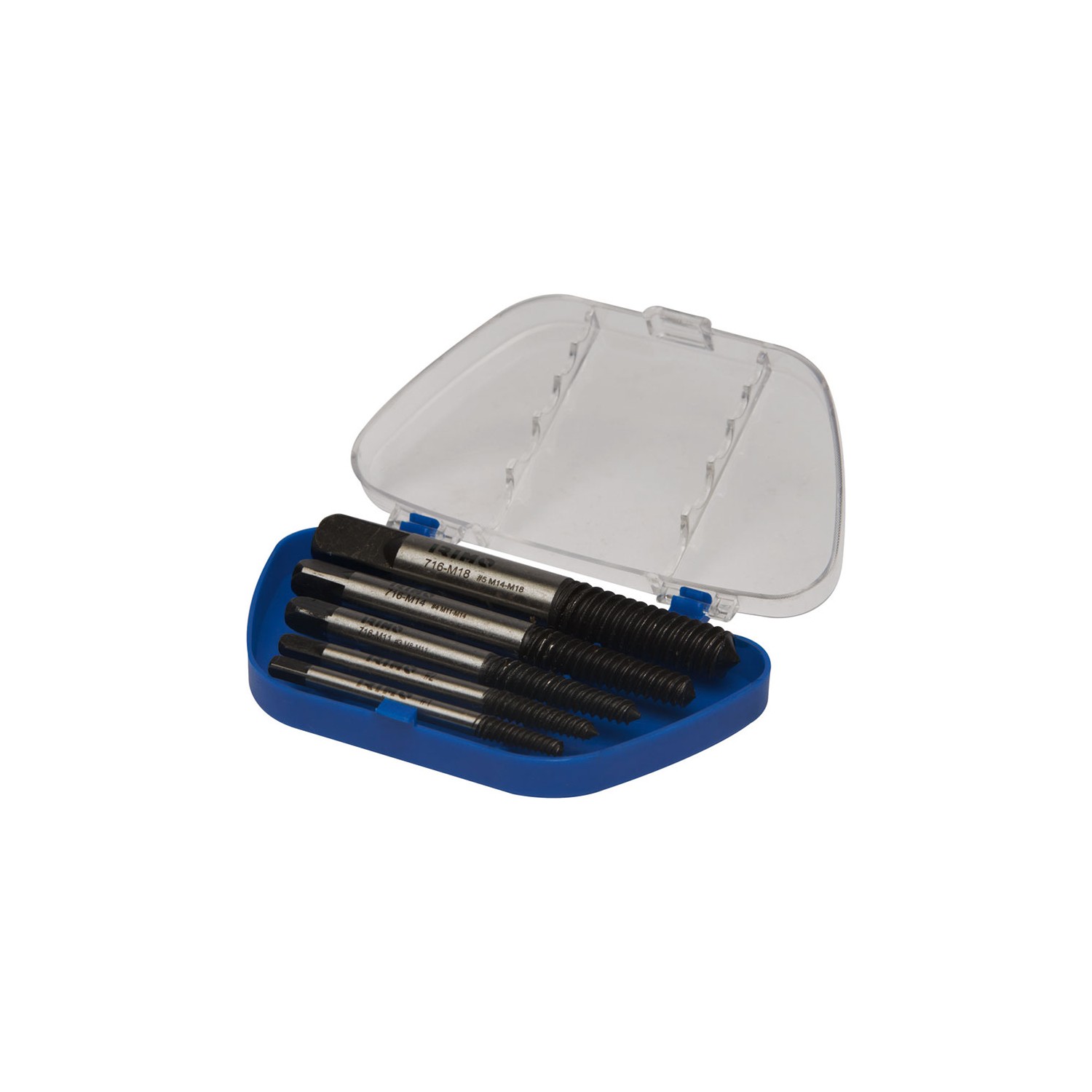 Juego de 5 extractores de espárrago (1420-1421-1422-1423-1424) 716-5-1. para extraer tornillos, espárragos y tubos rotos. desde m3-6 a m14-18. acabado: cromado.