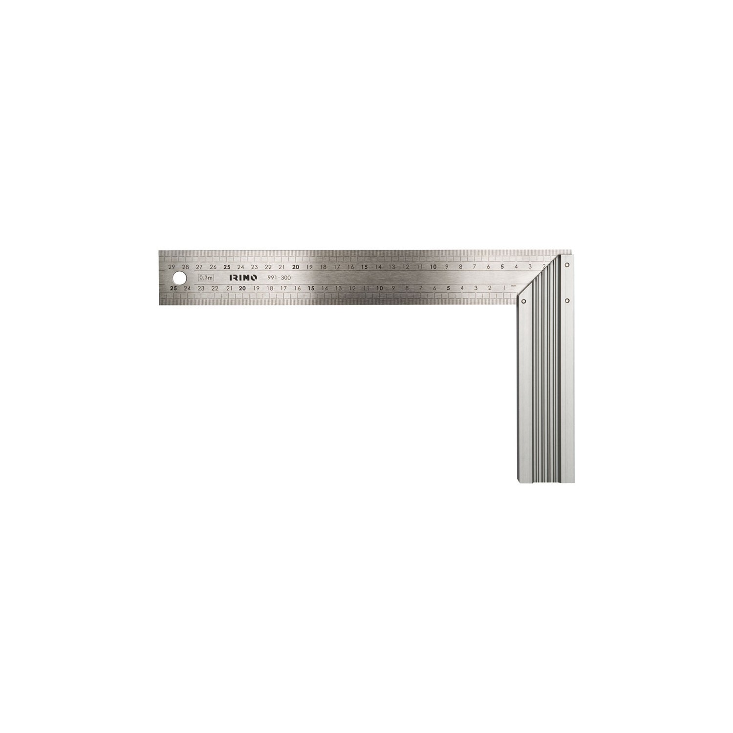 Escuadra 400mm 991-400-1. escala en mm. hoja de acero inoxidable. mango de aluminio. agujero para colgar.