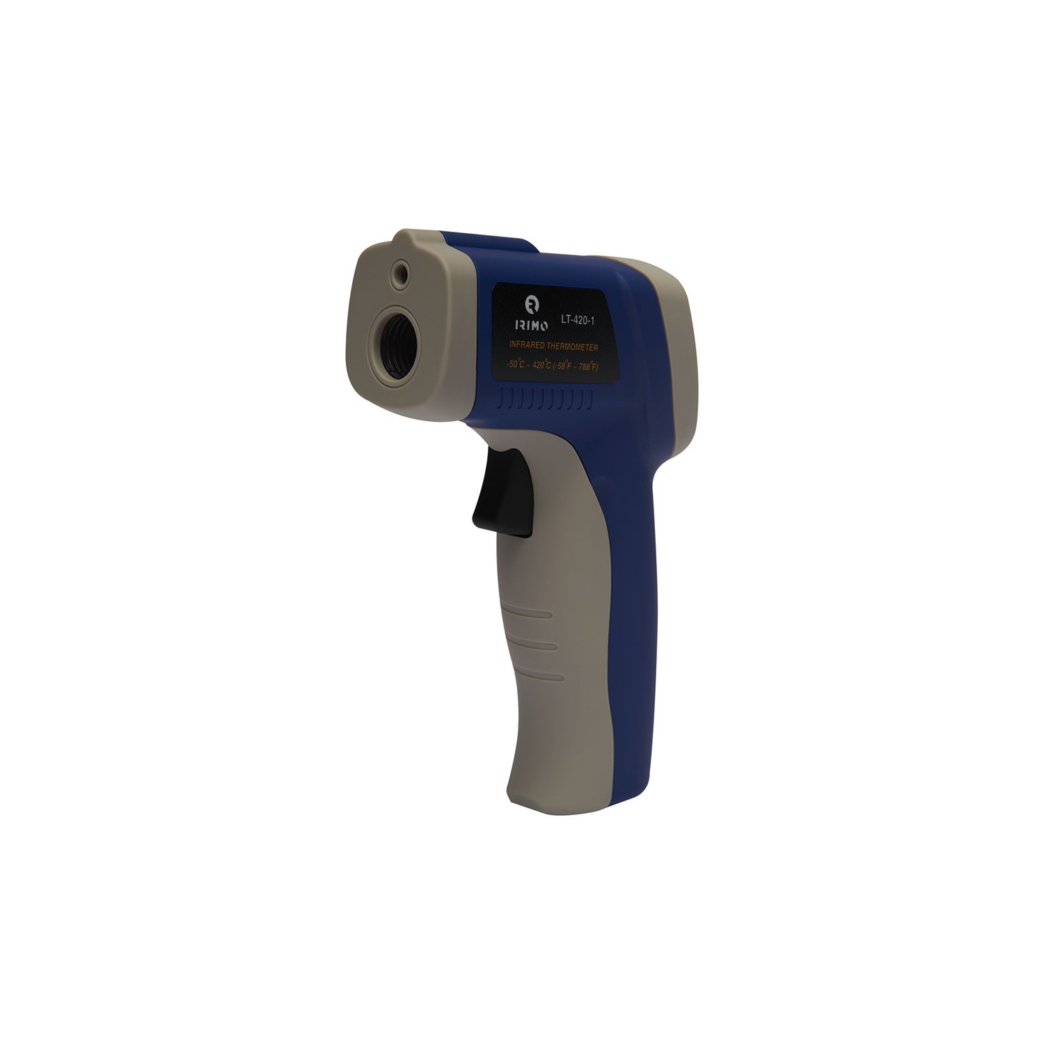 Termómetro de infrarrojos lt-420-1. mide la temperatura sin contacto. rango de medición: de -50 a 420°c ( -58 a 788°f). incluye un puntero láser. precisión: de 0 a 420°c, +/- 1,5%. de -50 a 0°c, +/- 3%. resolución de 0,1°c. repetibilidad de la lectura de 1% o 1°c. tiempo de respuesta: 500ms. distancia hasta el punto medición: de l12 a d1. incluye una batería de 9v.