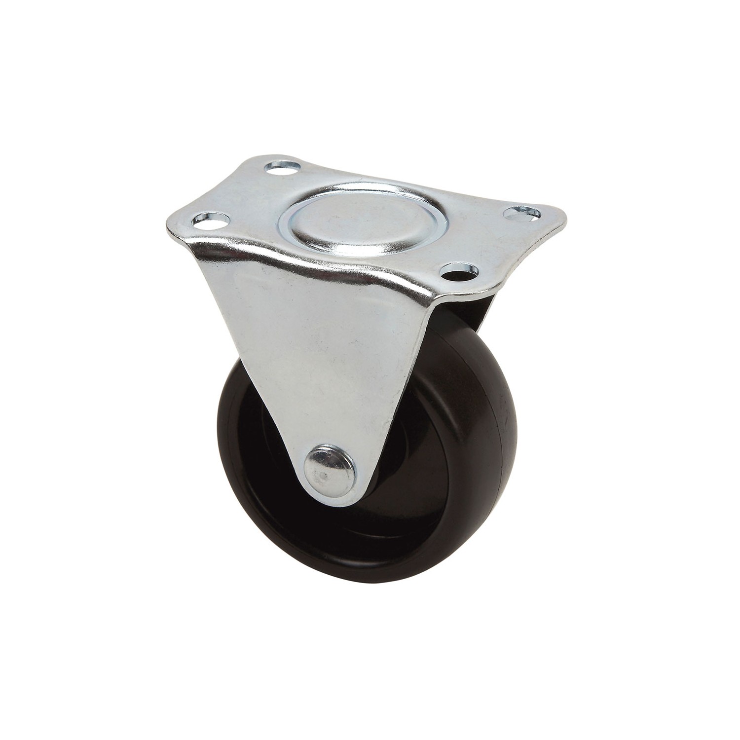 Rueda fija con placa y eje liso, color negro, material: poliamix, carga máx. 20 kg, ø 4 cm
